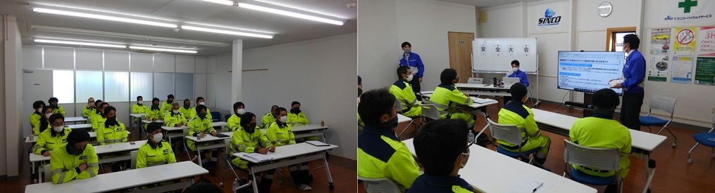 2021年1月度 安全大会(甲府営業所) ■教育内容 1.開会の挨拶 2.コロナ対策再周知 3.2021年度の目標と抱負について 4.事故周知 5.総評■所感 長い休みの後やコロナの事であったり自分や周囲の事で 気持ちの変化もあると思いますが皆でこうして集まることで安心できると思います。 また皆さんの活躍を私たち内勤がフォローしていきますので宜しくお願い致します。 コロナ関連になりますが、濃厚接触者の定義は15分以上マスク着用無しで 同じ空間で会話や食事をした場合が対象になります。 実際に日本の電車内での感染は世界と比較しても少なく、 文化の違い(マスク着用率と電車内での会話の有無)によるものになります。 内勤側でも休みの日のインサークルでの検温報告を実施しているので 引き続き皆さんのご協力をお願いします。