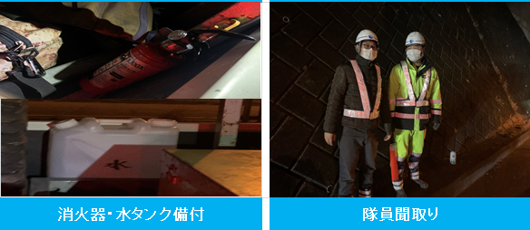 ↳消火器・水タンクの備付。消火確認を確実に実施。
