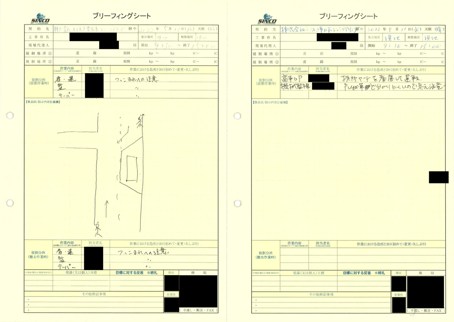 ネクスコ東日本エンジニアリング様の現場稼働が本格的にスタートした為、現場パトロールを実施 全体を通して経験豊富な隊長のもと安全に作業が進められていた。 社内で続いているバック事故について全員へ再度周知。 ・死角、認識スピード、過信、事故による影響、バック事故の割合について再確認 交通量が少ない場所での片交であるが各自が集中を切らさず安全な誘導が行えていた。 一般車への合図が明確に出来ていない為誘導方法を指導。 規制の切り替えもあったが、各自が声を掛け合事でうまく連携がとれていた。 矢印板など劣化した規制材が目立つので購入し見栄えを良くします。
