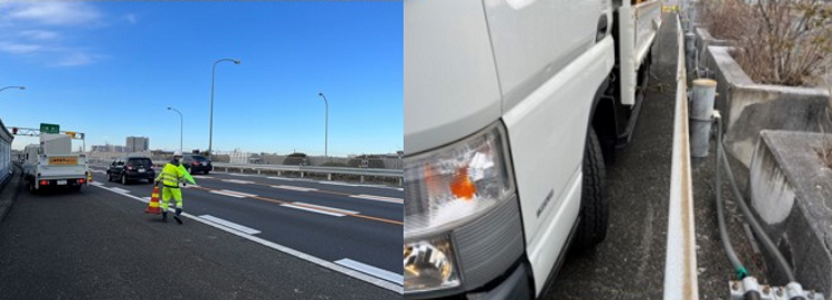 比較的スピードを出す車両も多く路肩内での作業はいつも以上に注意を払いながらする必要があります。