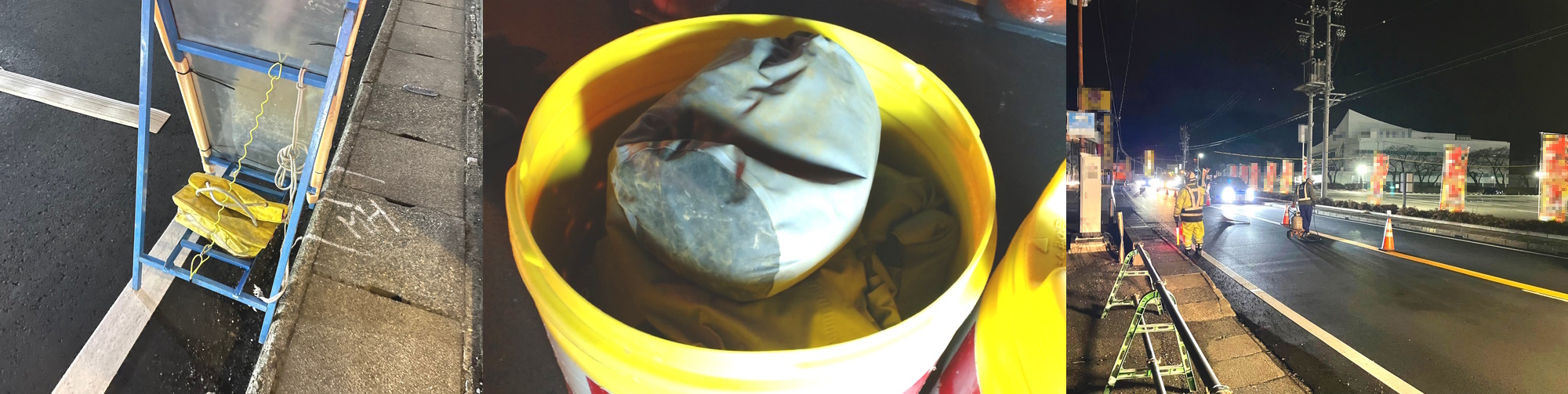 ・各資材へのダブル土のう、クッションドラムへの水嚢など、規制材への養生ヨシ。