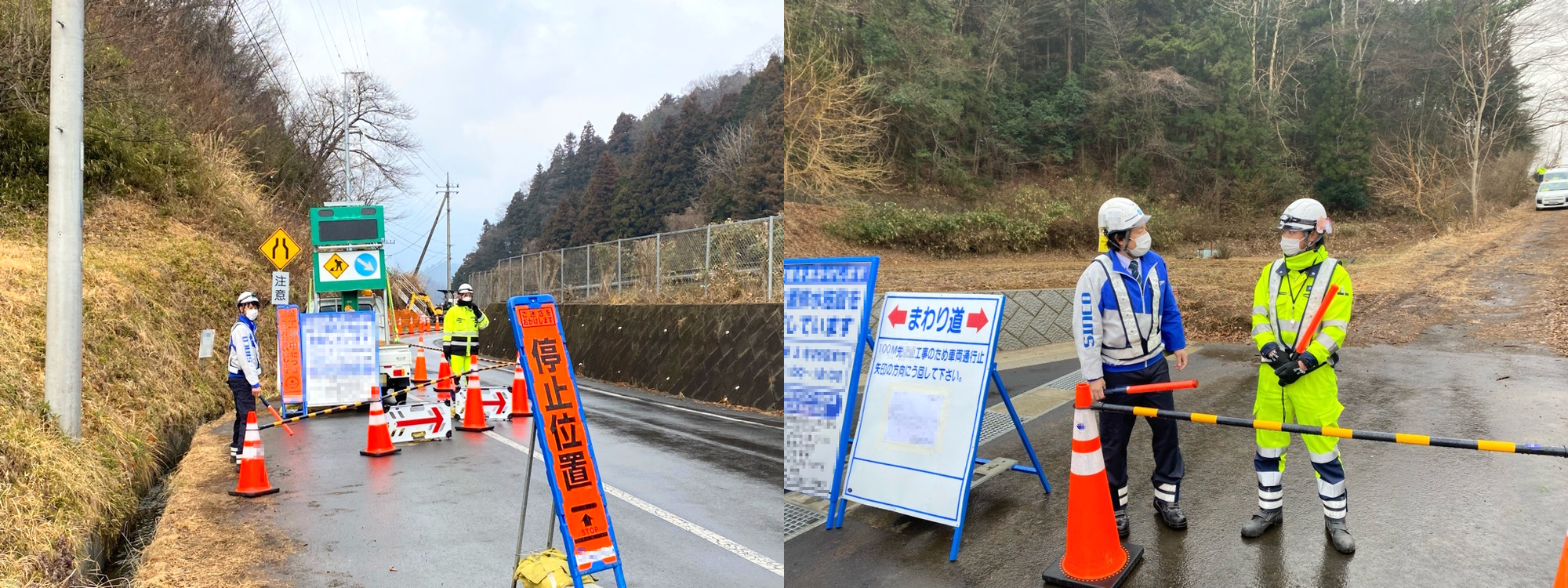 通行止め班と片側通行止め班の2班体制になる事と、隊員さんからご年配の運転手の方が