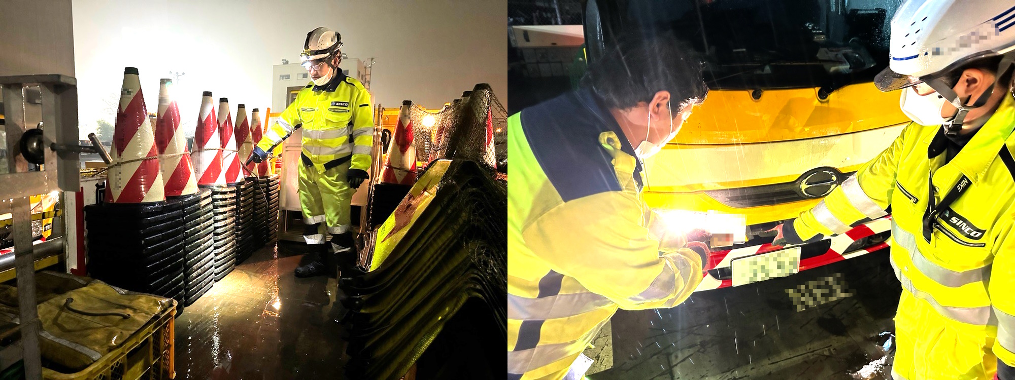 荷台のコーン数量や資材管理・カラビナワイヤーの設置など