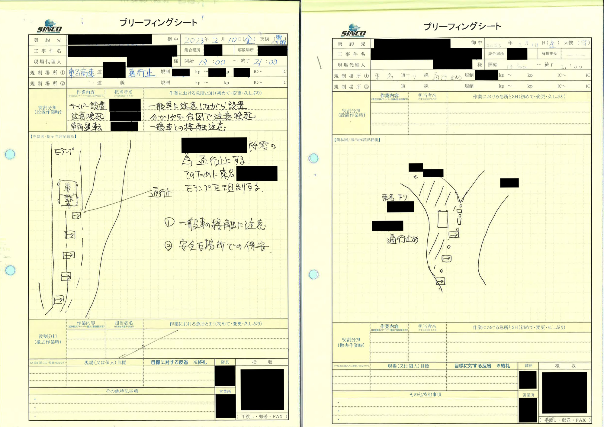 ①規制図を基に規制手順及び各自の役割・保安箇所及び乗車車両の確認