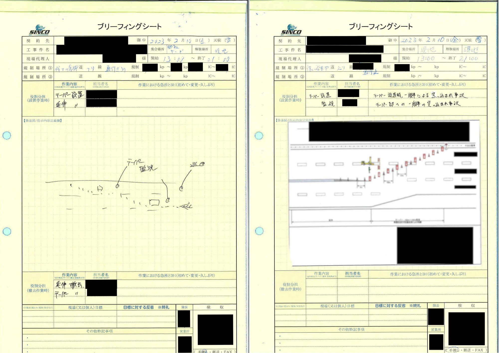 ②高橋係長 ※資材及び車両手配,厚木営業所への車載車の借入,規制設置完了後の状況確認