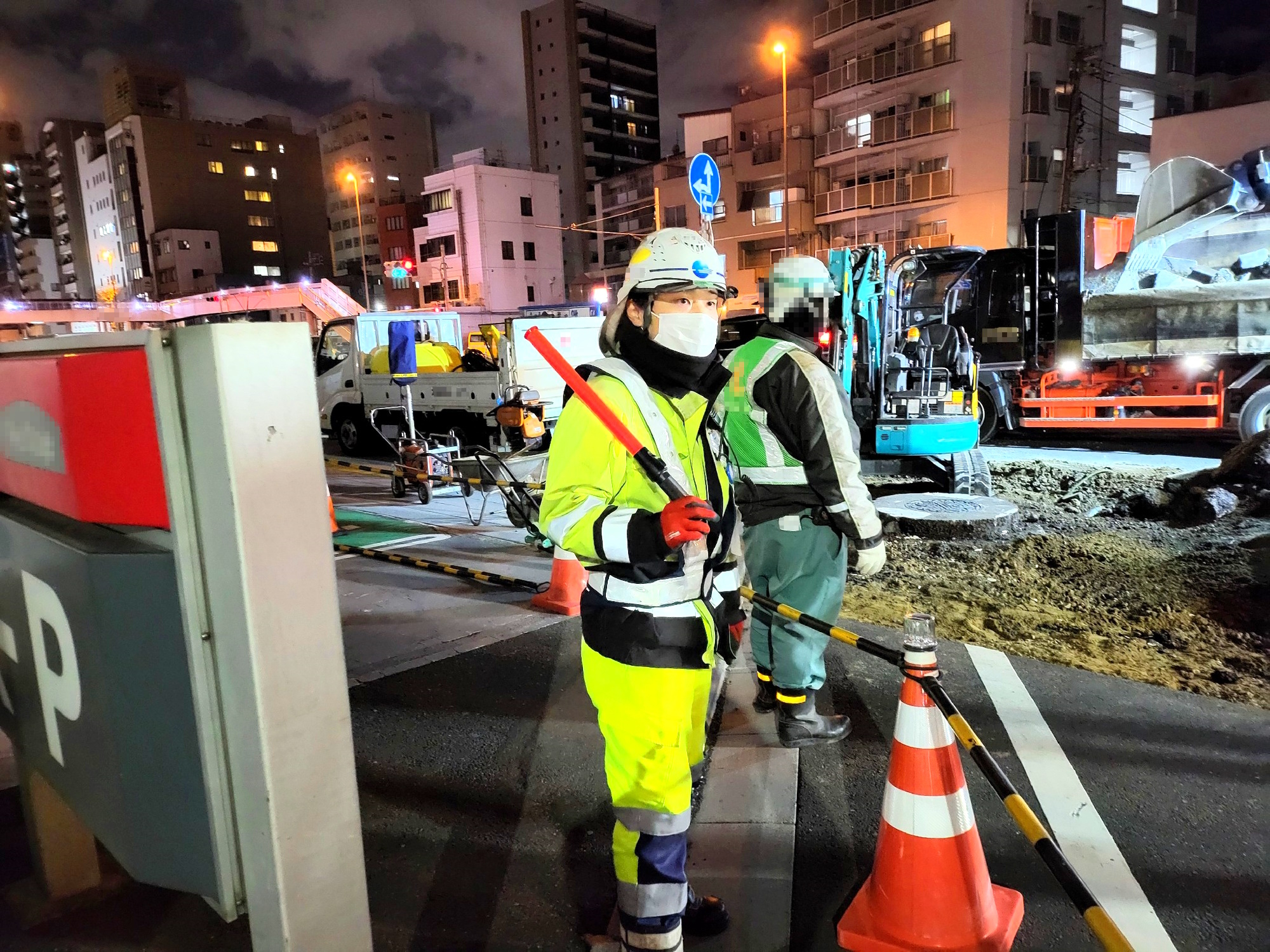 人の出入りの多い施設が並んでいるため、一般の方への配慮を常に念頭に置いて作業、保安につくこと