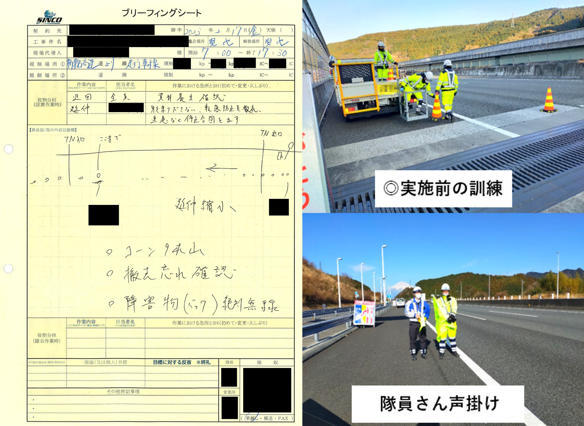 所長パト 新東名高速道路 上り線 走行車線規制(静岡営業所)ブリーフィング内容