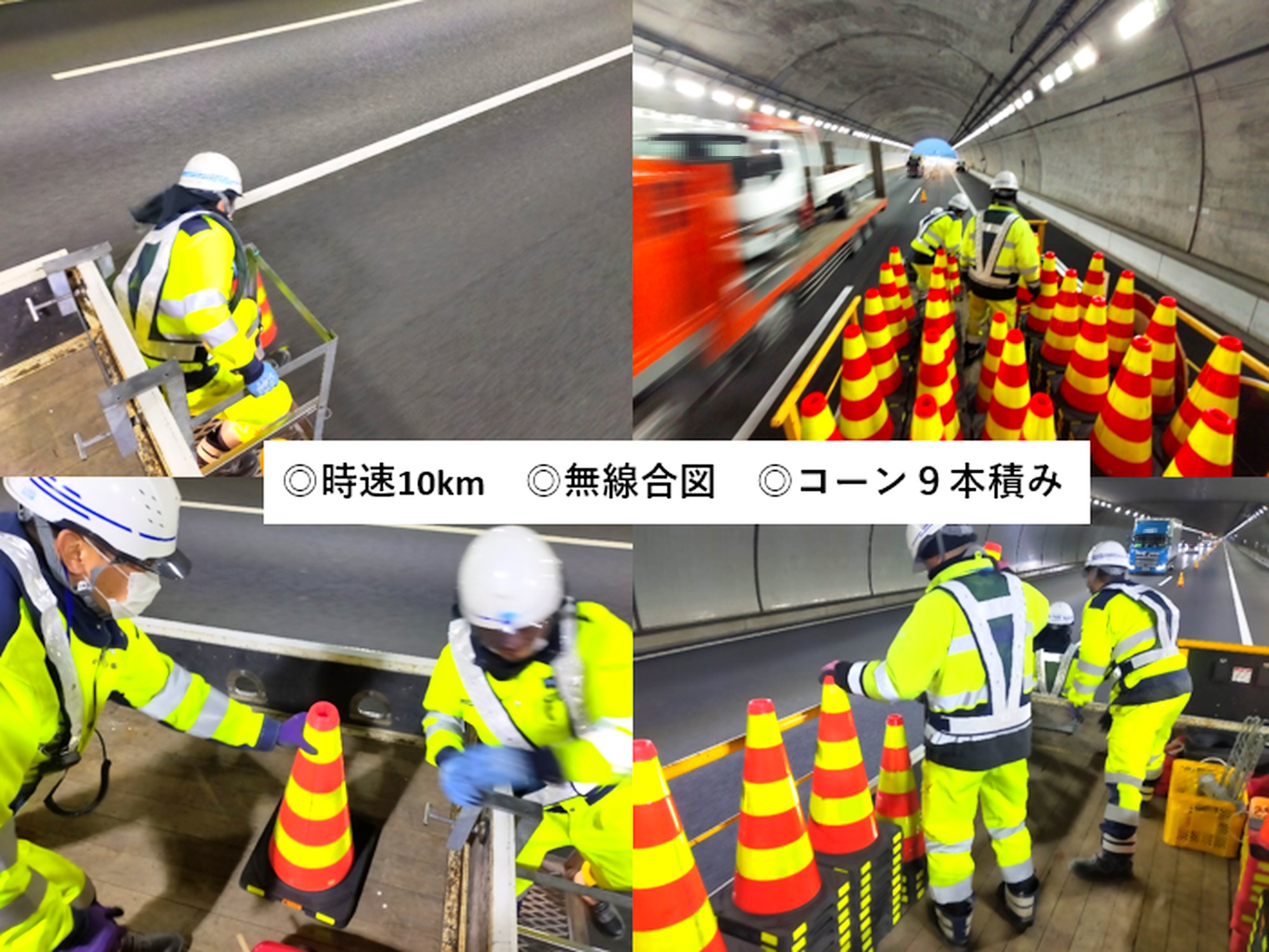 看板事故を教訓にテーパー部をはじめ規制資機材は全て強固に固縛されておりました。
