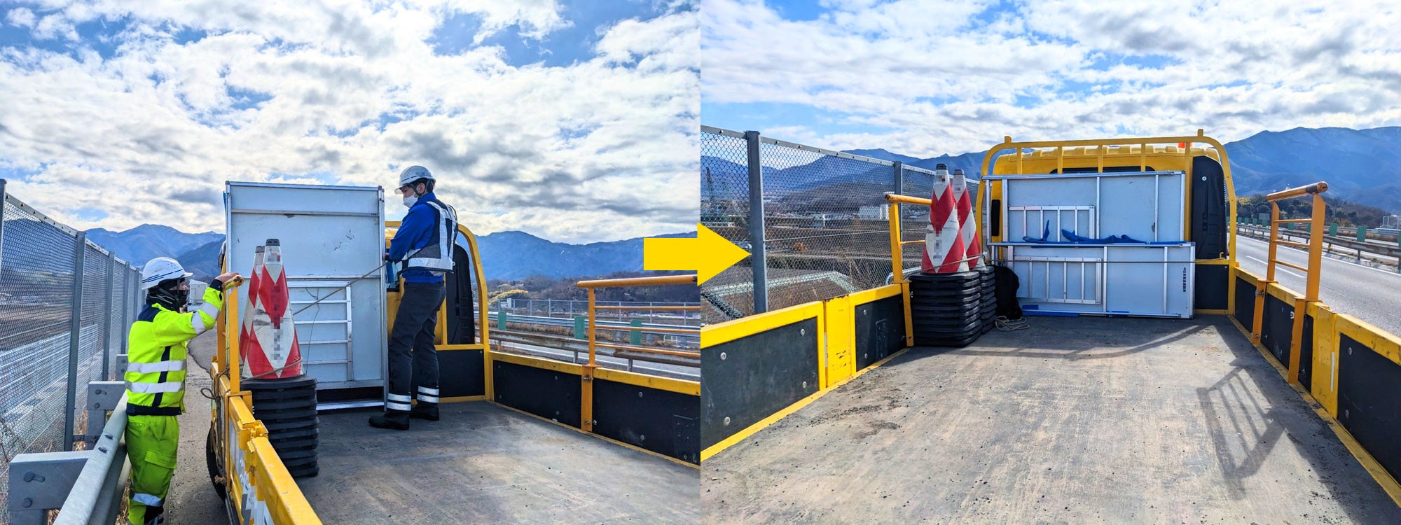 ・本日規制内でポンプ車を反転させる為(協議済み)、車両を挟む形で誘導員を配置し、