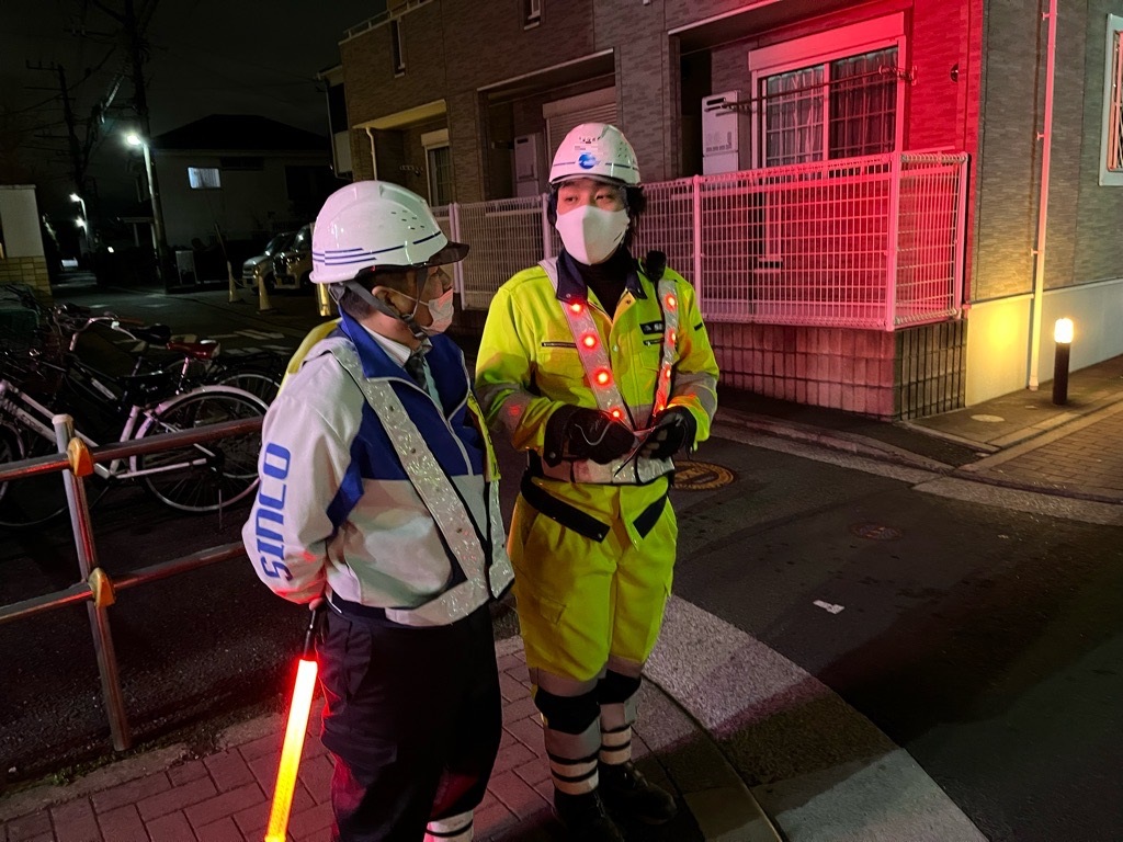 パトロール実施者:厚木営業所 大竹所長 大喜多 職員 日時:2023年02月23日 21:00~23:00 天候: 天気 曇 気温 8 ℃ 湿度 70 % 教育対象者:3 名 (システム課 黒野)