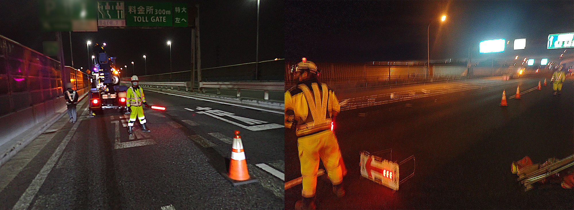 ・規制延長 2.3kmと長く ネクスコ・首都高の管内での規制。資機材の事前確認は複数人で確実に