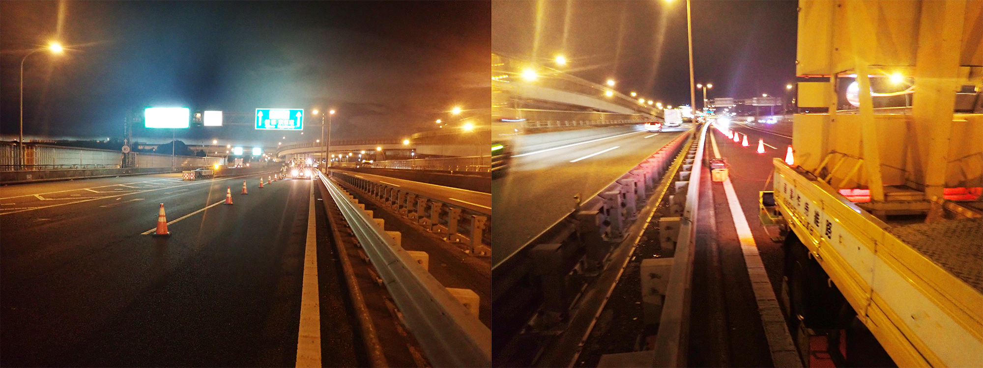 ・規制延長 2.3kmと長く ネクスコ・首都高の管内での規制。資機材の事前確認は複数人で確実に ・規制内にメンテ東様、首都高技術様、お客様と複数の工事での出入りがあるため、 呼び込み連絡の段取りの確認 ・浦和からだと追越に移る際、減速区間が足りないので岩槻から乗り入れすること。 ・延長区間内での巡回を1h毎に行うこと。 所感