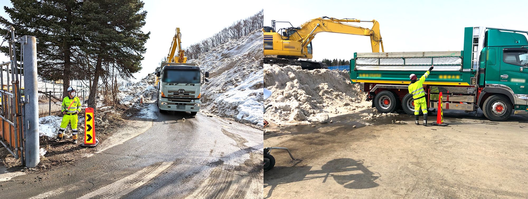 パトロール当日は捨て場に堆積した雪の二次運搬作業を行っていました。
