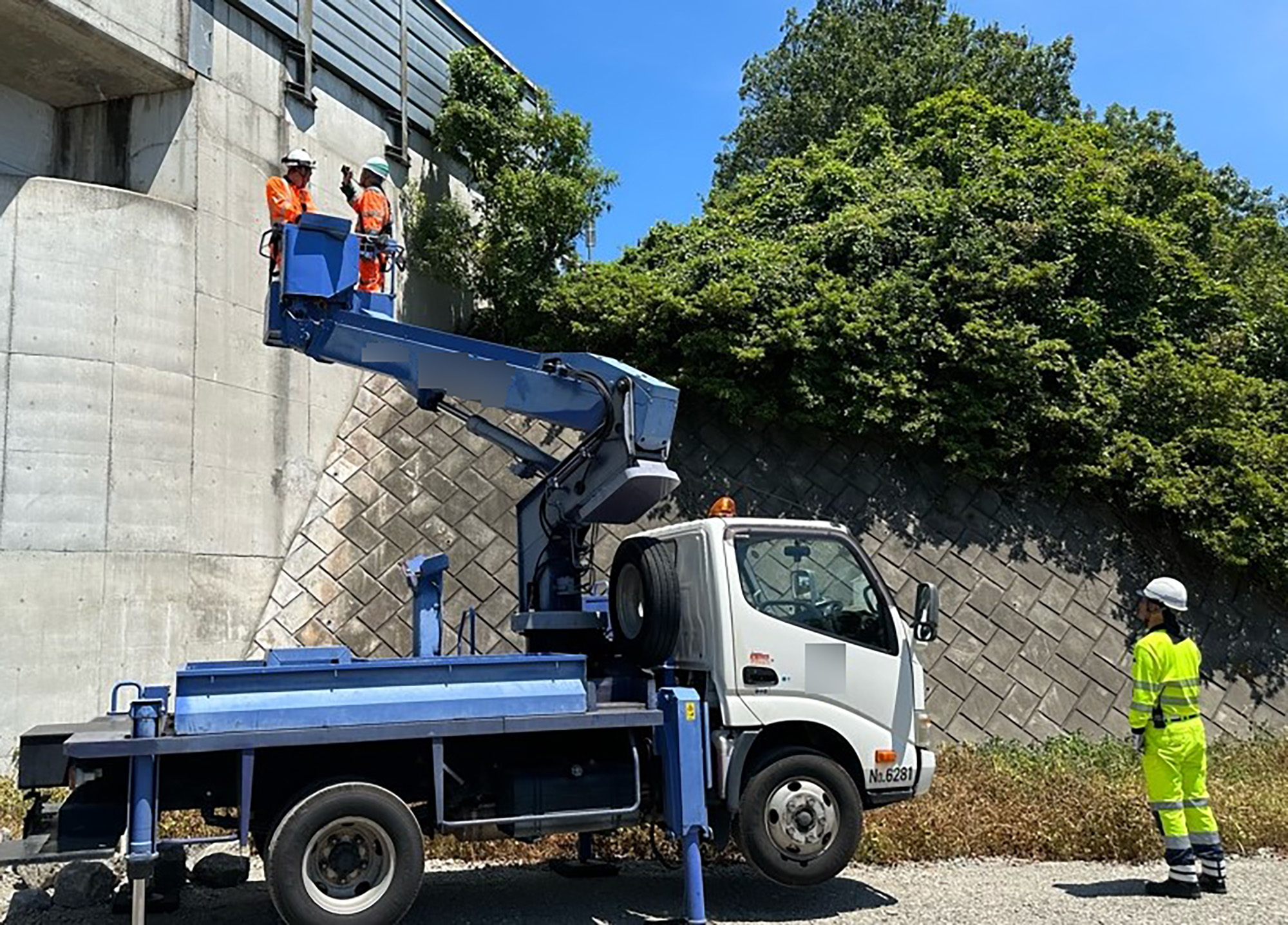 高崎道路事務所管内の仕事のため、長距離移動が多い現場となりましたが、 安全に勤め上げてくれた隊長さんには大変感謝しております。 また、昨年度に高所作業車の資格を取得した隊員さんも、 オペレータとして一つの現場を受け持ち、活躍の場を広げることができました。