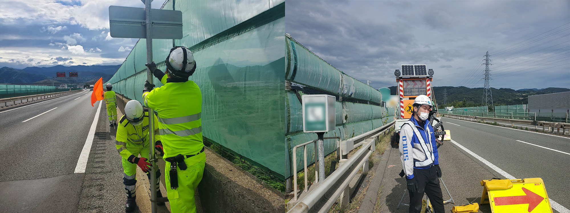 路肩が狭いので監視員を完全に配置し作業に当たること、