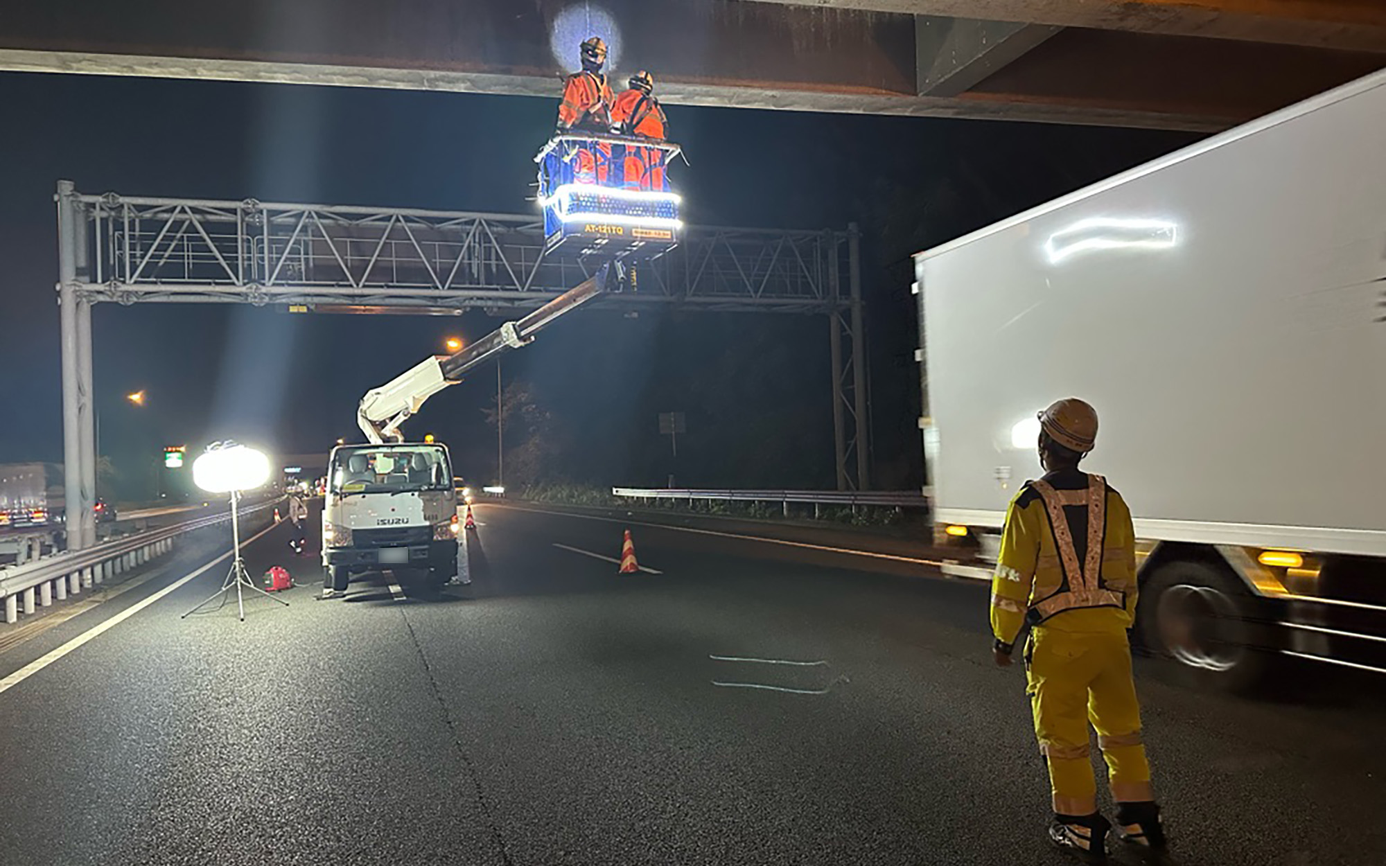この日の作業は関越自動車道下り線の追越側の二車線規制です。