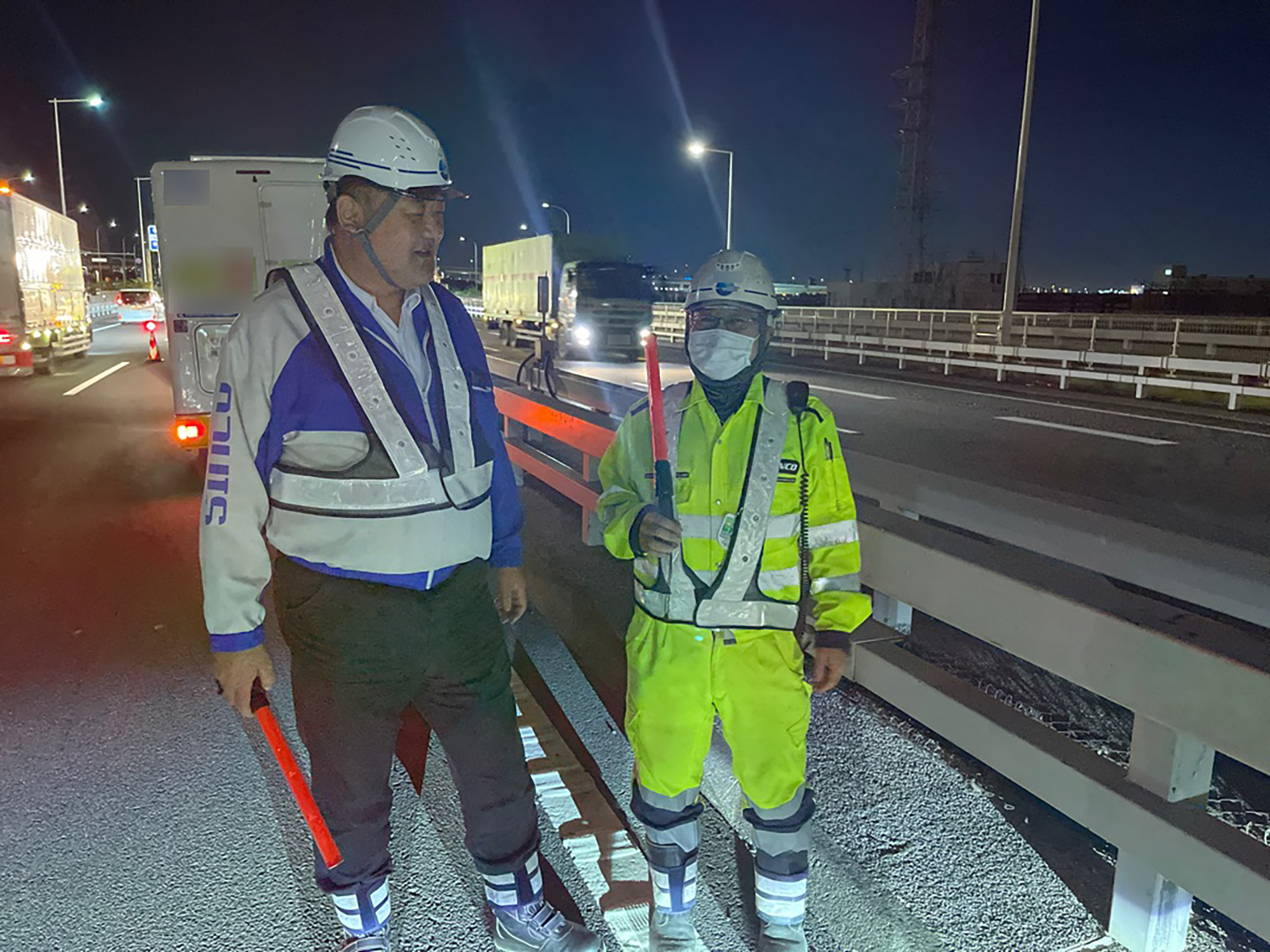 発炎筒の扱い、矢板の飛散防止など安全行動が見受けられました。