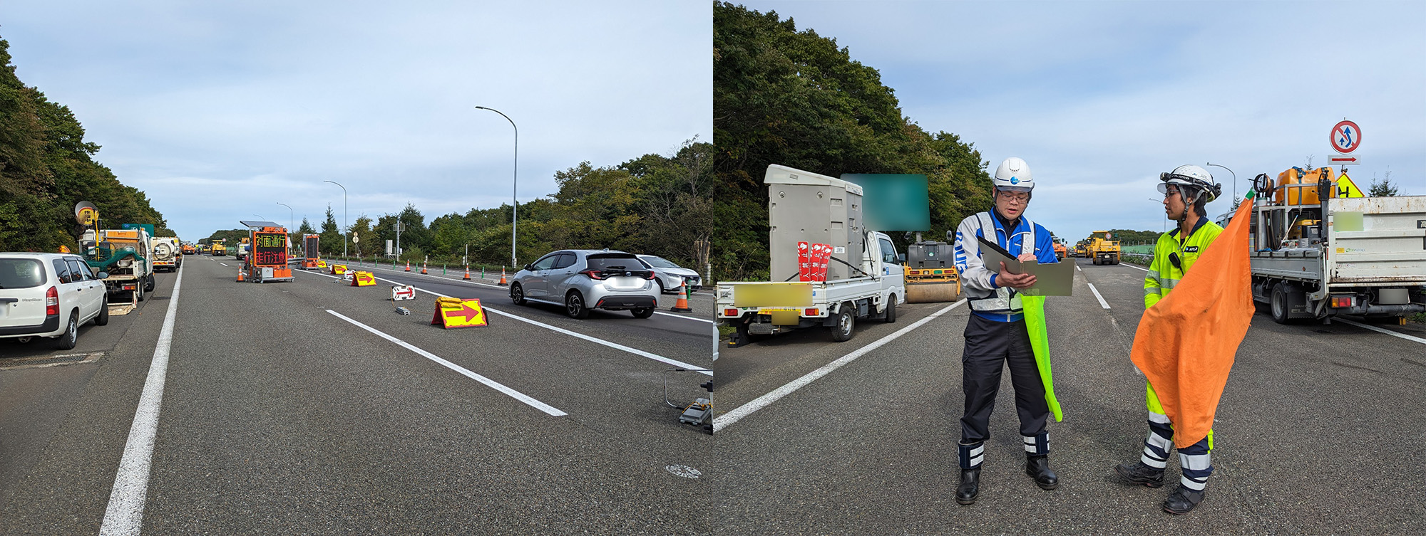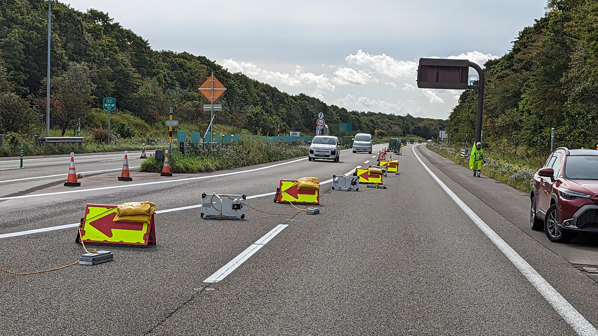 所長パト 道央自動車道上下線対面通行規制(江別営業所)