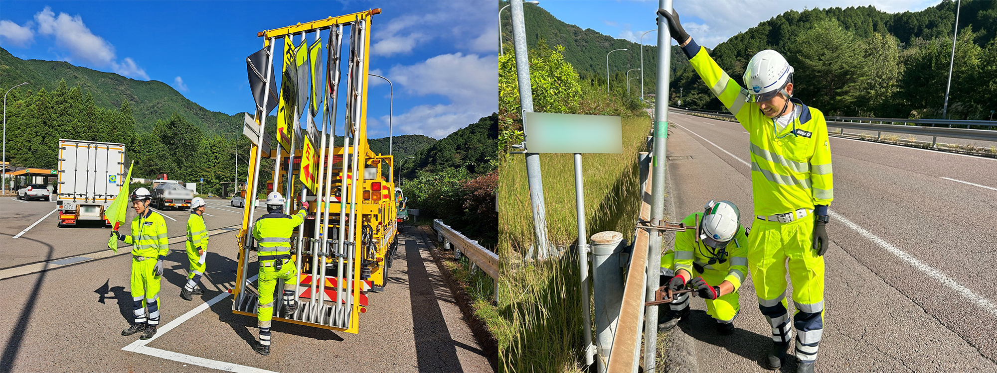 標識設置撤去時は非常駐車帯をジャンプしながらの設置となります。