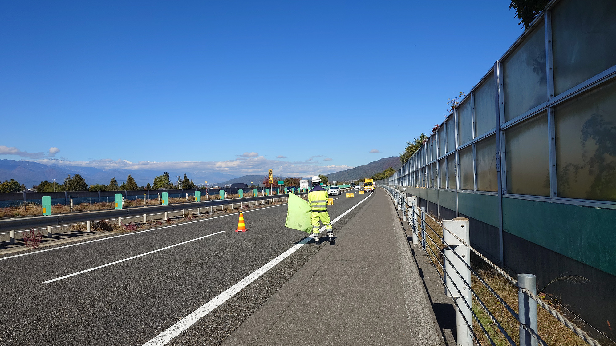 所長パト 長野自動車道上り線走行車線規制(長野営業所)