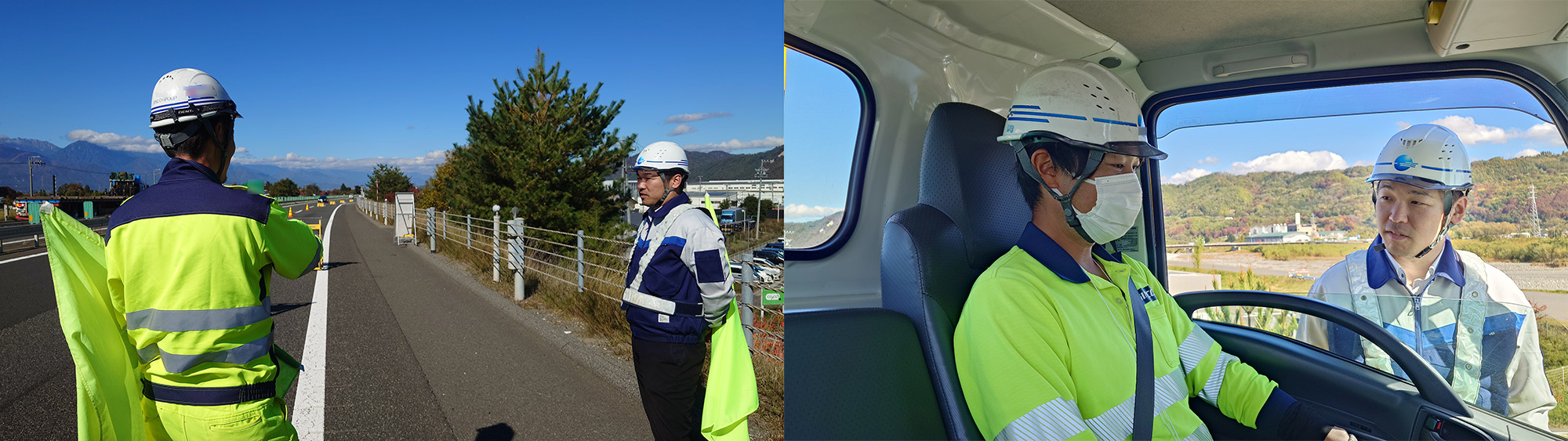 普段は長野管理を中心に作業をしている隊員さんもいた為、 隊長さんに説明用の松本管内作業手順書を松本営業所から持っていき、田中職員より説明をさせました。 SAから出てすぐの規制になりますので、普段もそうですが、見られている意識を持って、 正対作業と立哨保安をするように指導しました。 松本営業所の隊員さんも規制に参加しており、助言をしっかり行っていた様子が、 聞き取りの中で伝わってきました。 風は弱いながらも交通量は多いため、 撤去の際は設置した発炎筒の動向に十分に注意することを指導しました。