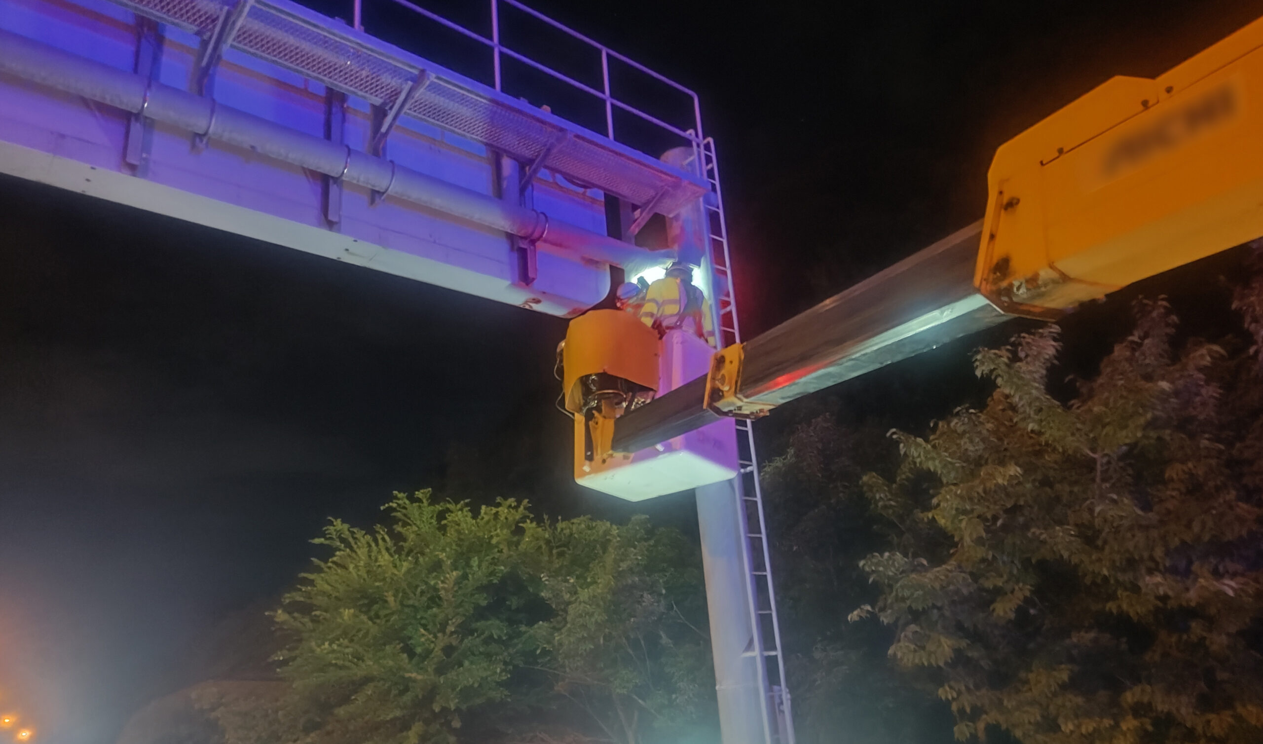 所感 当日の規制は山陽道上り線、ICアイランドからONランプの絡む走行2段規制になります。 この路線は夜間も交通量のある道路で、大型車両も多くスピードの出しやすい路線になります。 今回は、高所作業車のオペレーターデビュー戦で使用車両は12mスカイマスターなので 構造物に接触事故を起こさせないために現場パトロールを行いました。 オペをするに辺り、高車訓練を2度程行い今日が実践になります。 今後も高車訓練を実施することで場数を増やして、しっかりと指導してまいります。