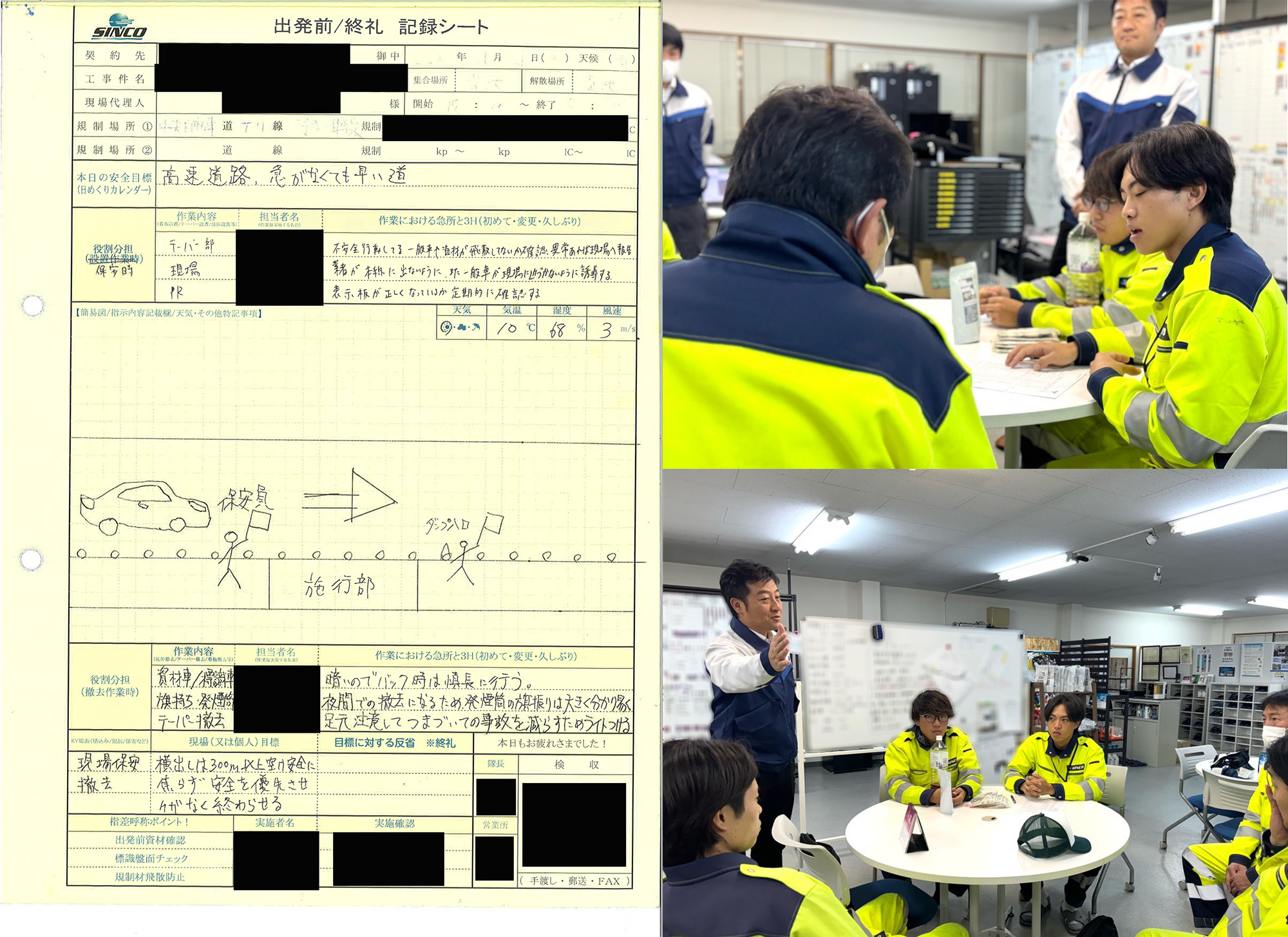 危ない所でだらだらと長期間滞在しないためにも、打ち合わせなどは撤去前に行うように指導。