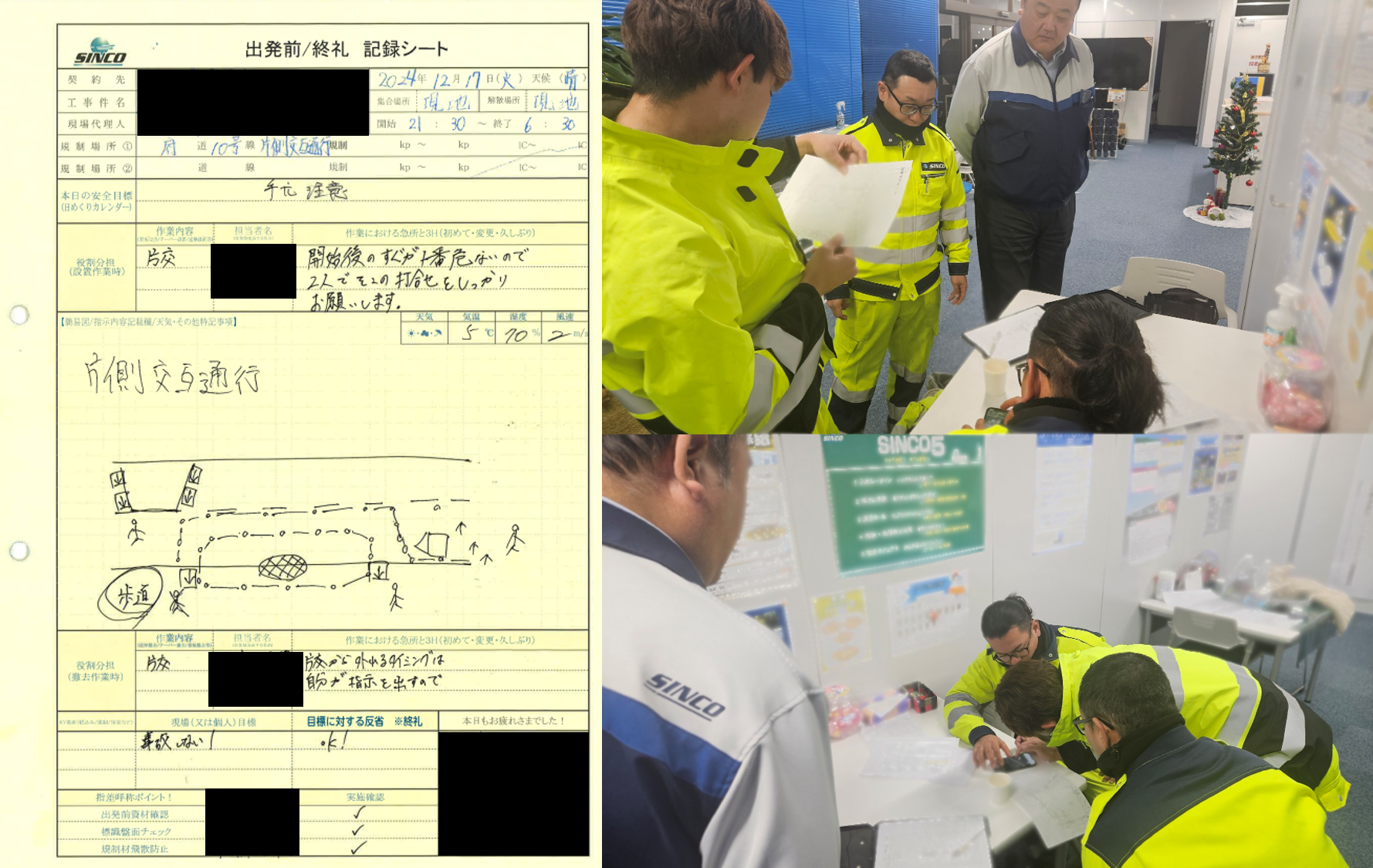 所長パトロール 府道10号東行き片側交互通行規制(神戸西営業所)ブリーフィング内容 ・報連相の徹底 ・車両バック時、3点ルールの徹底 ・作業時の役割分担