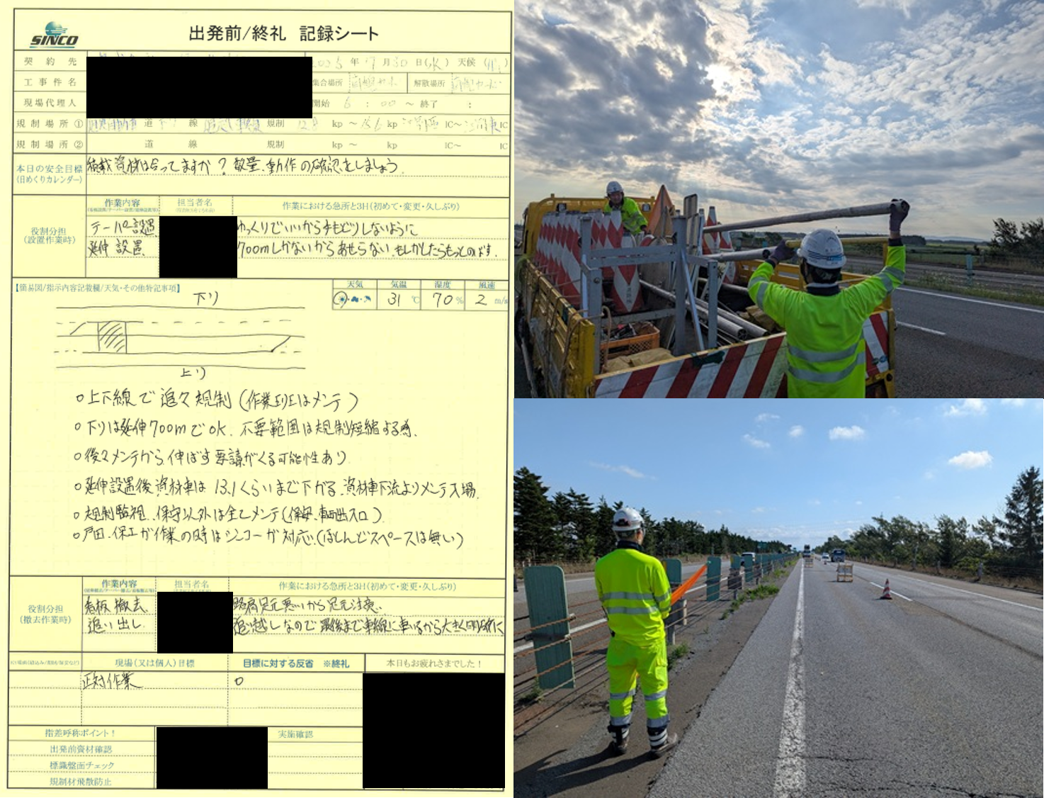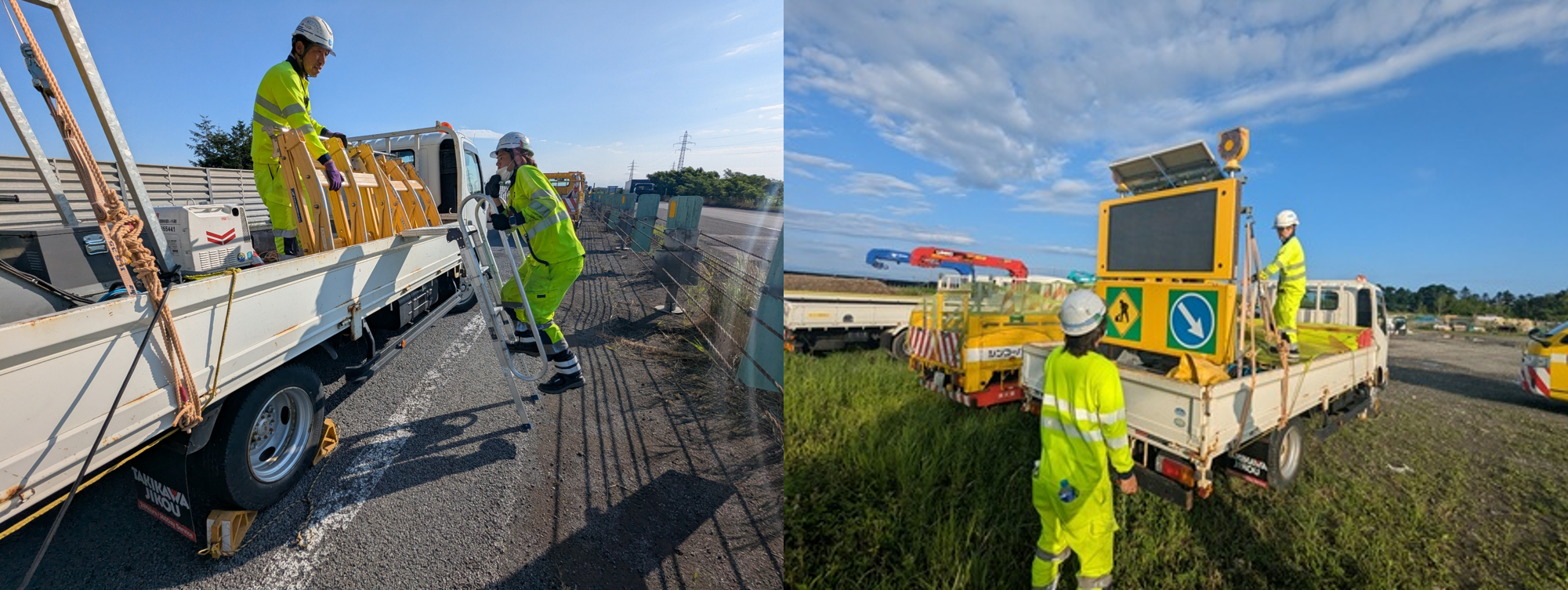 2.撤去時は交通量が多い時間帯である為、一般車の動向に注視する。