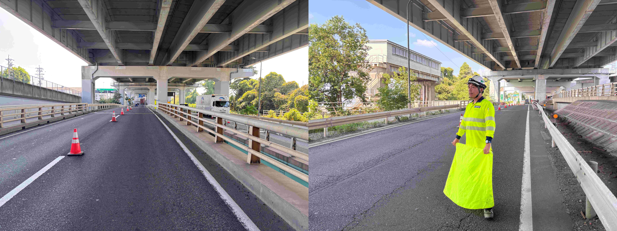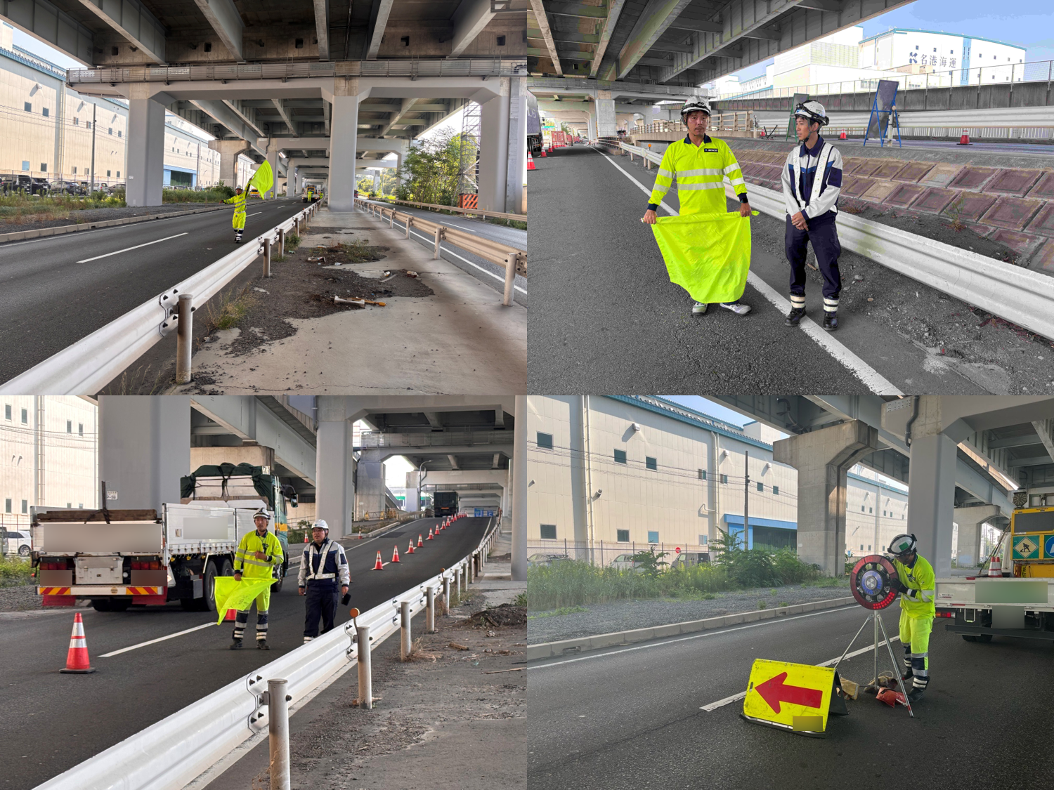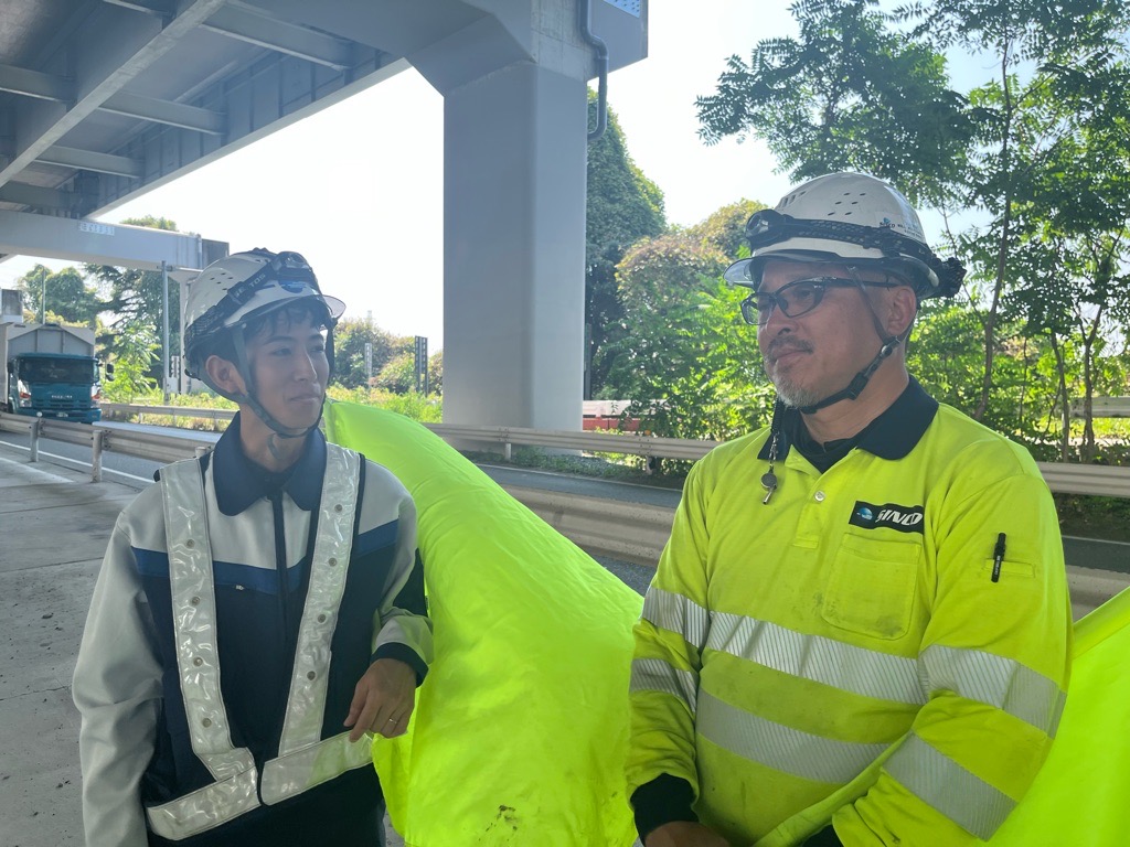 交通量の多い中での流入出となるため、上流監視員の方と無線を活用し