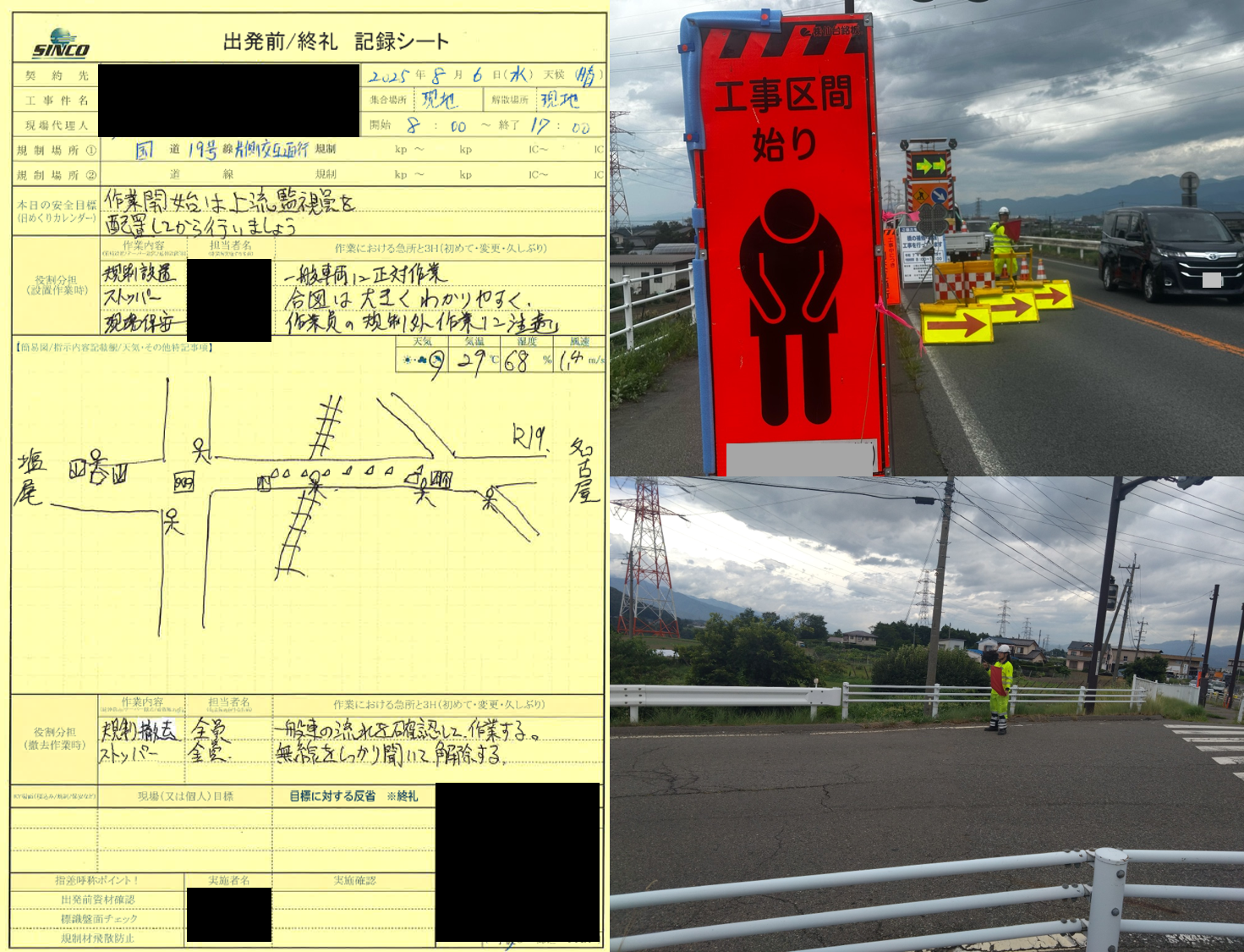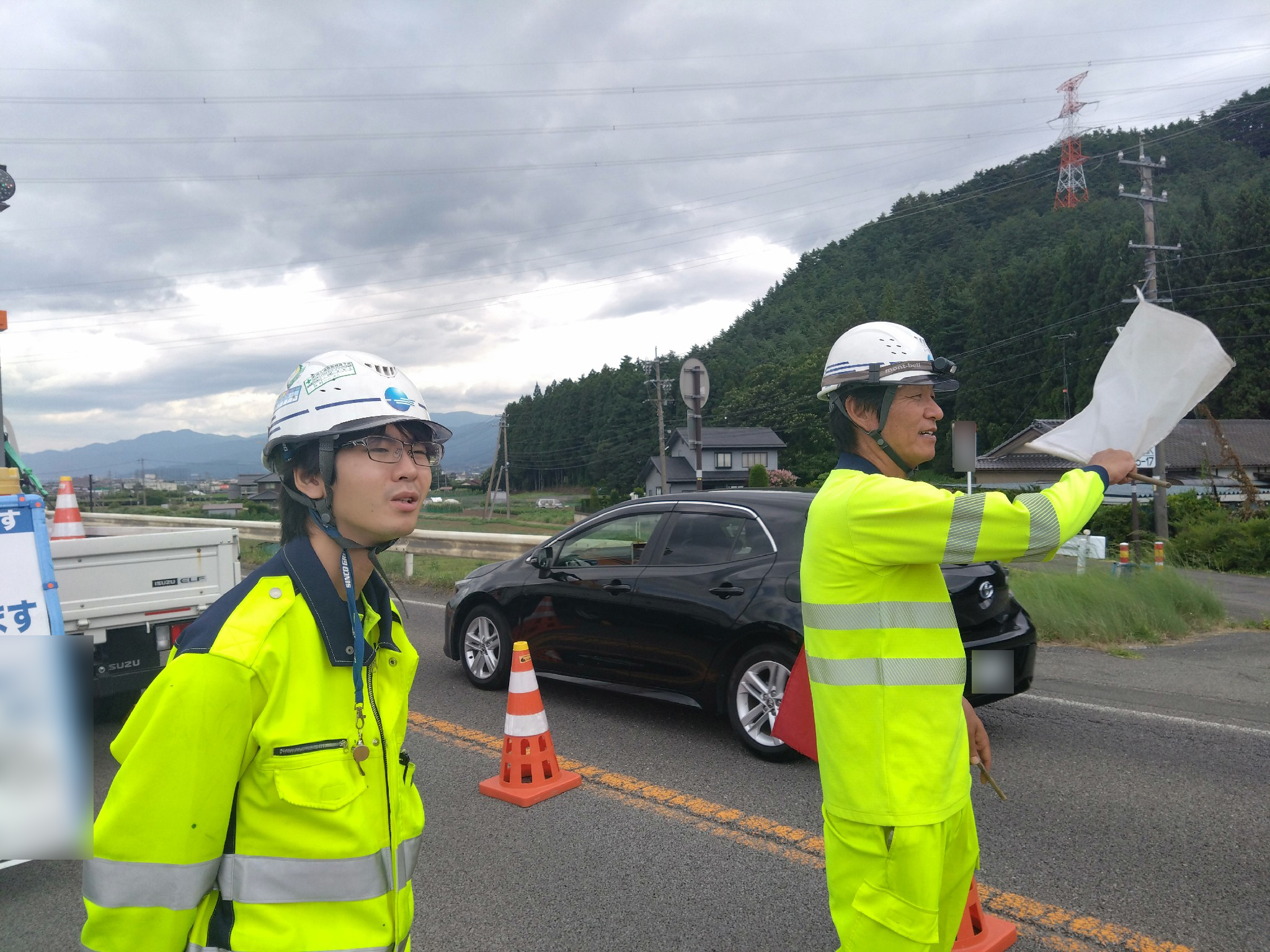 現場での配置などの助言も戴き、円滑な片側交互通行の誘導が行えていました。