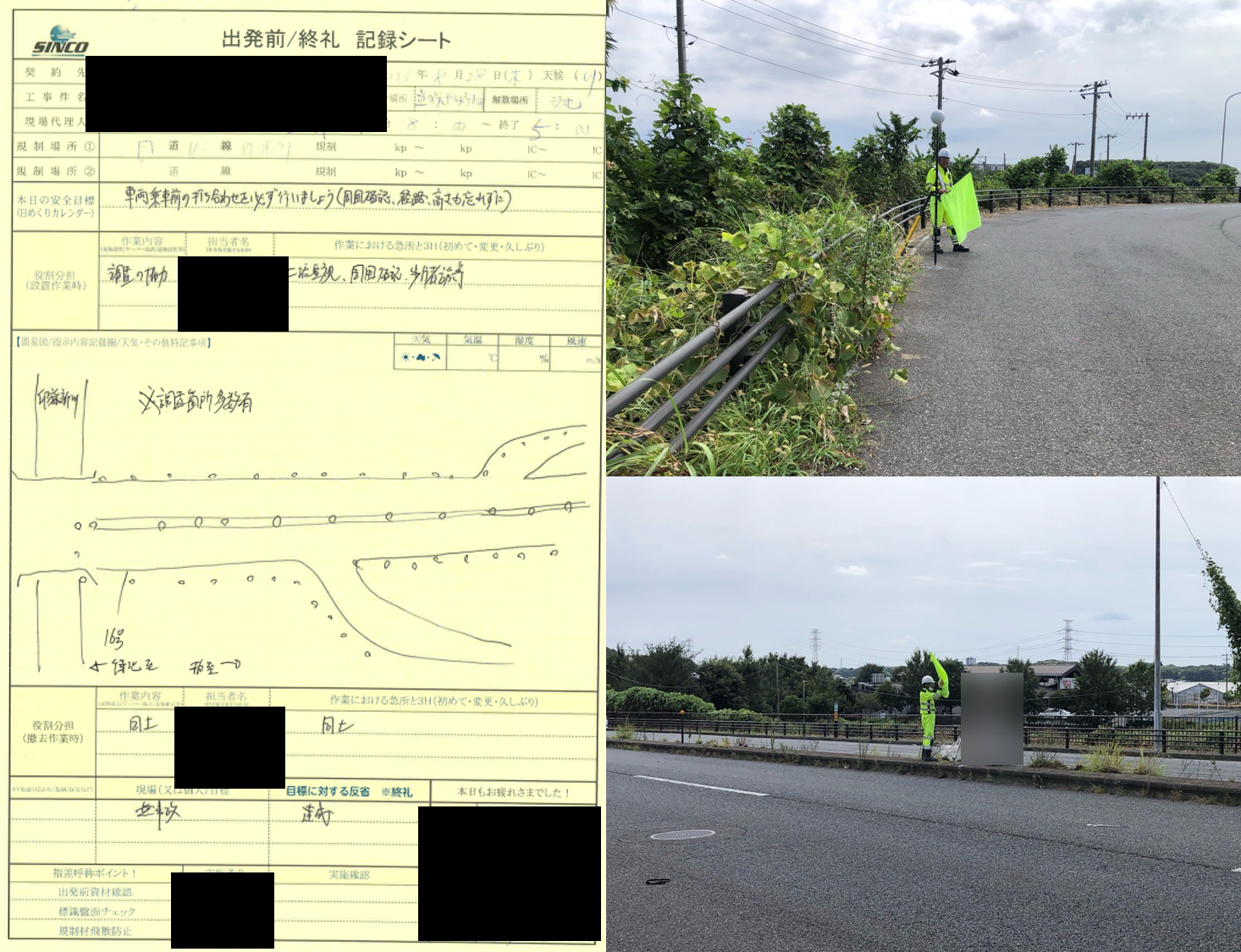 所感 福田道路株式会社様へパトロールを実施しました。 本日は、保安のみであるが初日の為ご挨拶を兼ねパトロールを実施。 本日の業務は、上下線の側道及び中分上での測量作業に伴う保安業務。 休憩は、現場訪問時からパト終了時(11:00~12:30)まで取れない状況であった。 今後は、お客様ルール(WBGT31以上時は1h毎に休憩)を含め、適宜休憩を挟んで頂く。 9月中旬からの本施工では夜間国道車線規制となるので、 規制材忘れなど3Hに伴うトラブルが起きないよう準備を致します。 好事例 ・配置隊員2名が無線を活用しうまく連携が取れていた ・一般車通過時は作業員さんへ声掛けを行い注意喚起が出来ていた ・飲料を携行し適宜水分補給が出来ていた