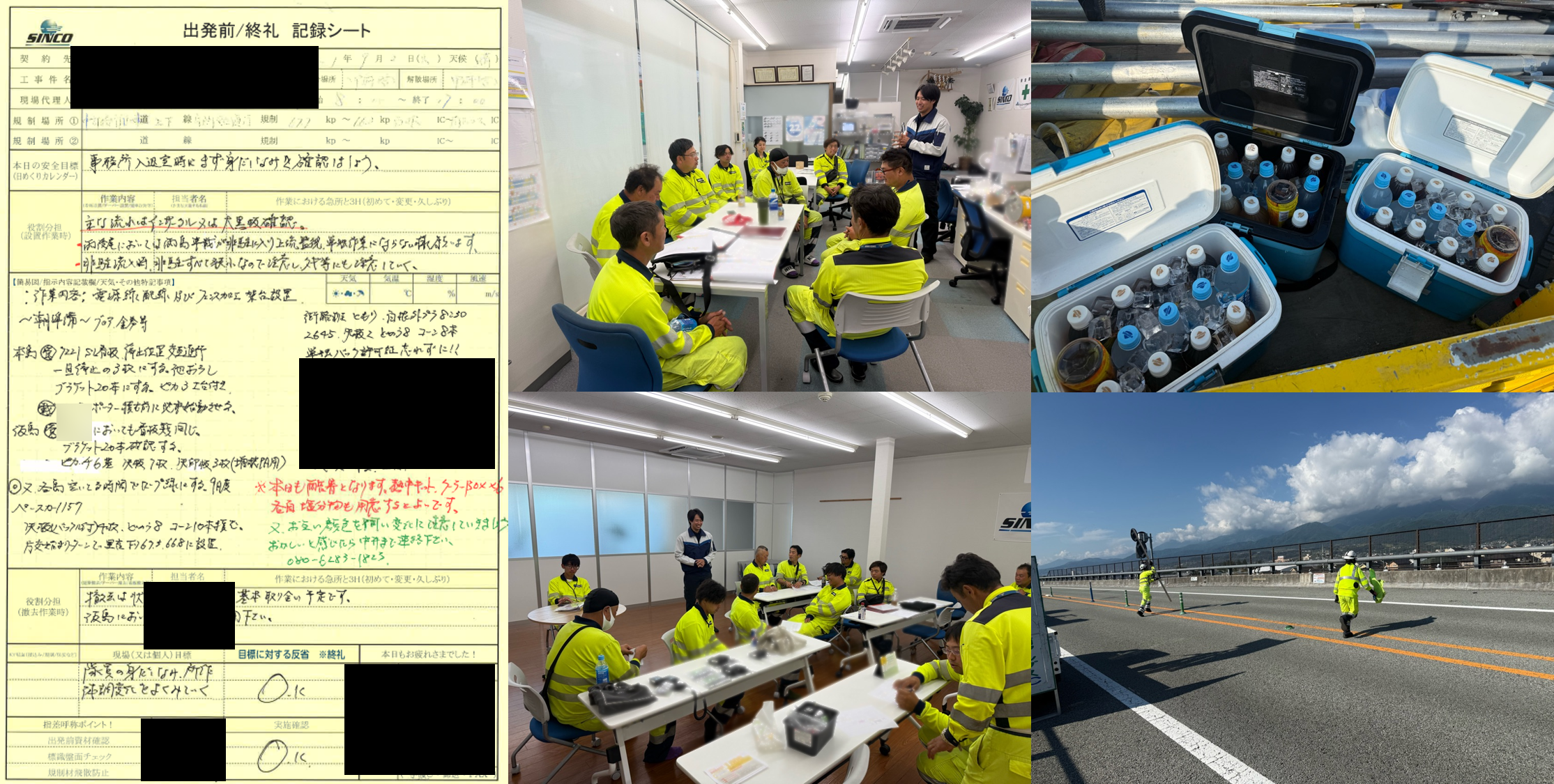 ・標識設置時、路肩がないので非駐を使用する。一般車との離隔に注意する