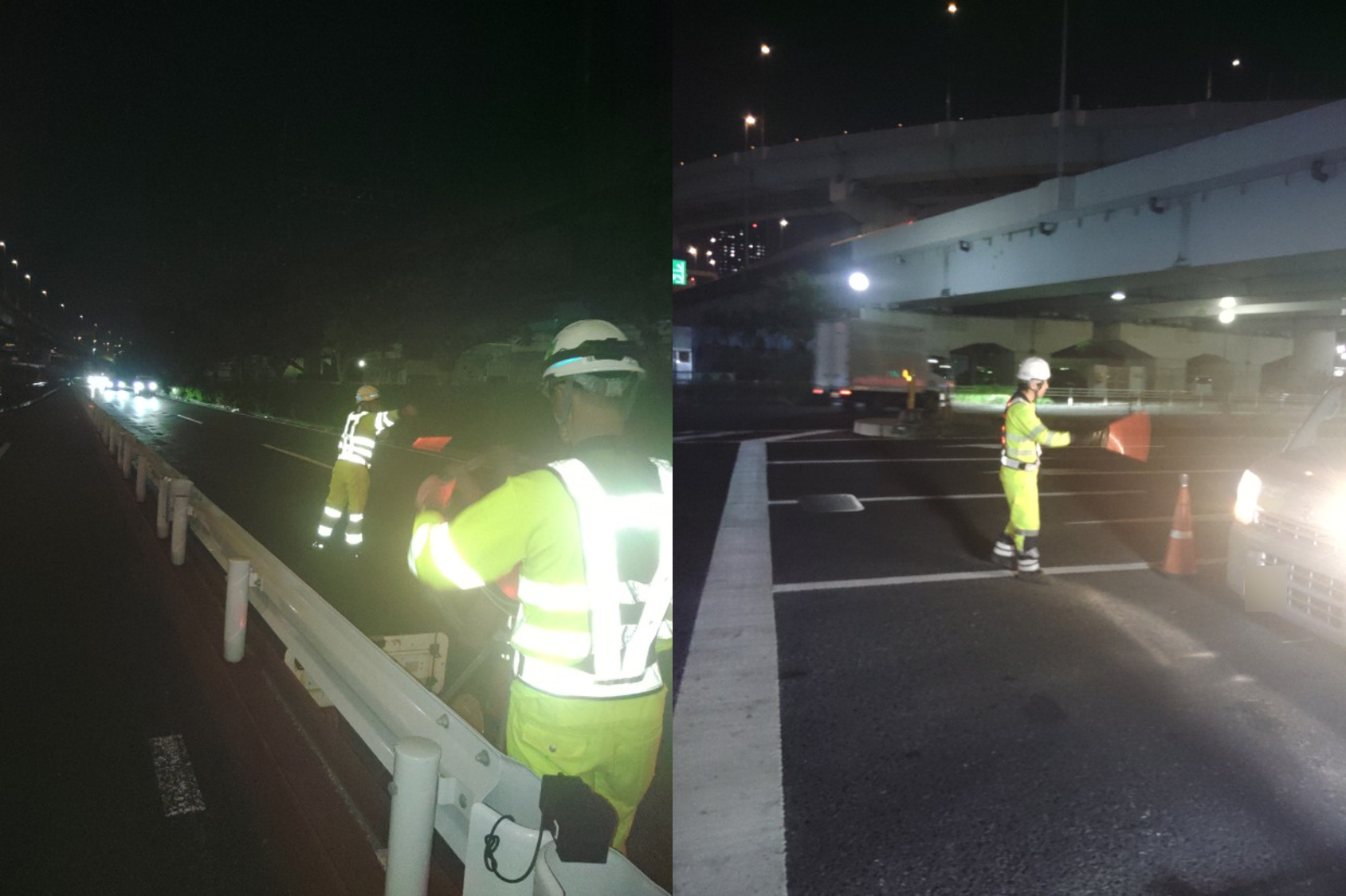 所長パトロール 国道357号西行き追越車線規制(葛西営業所)