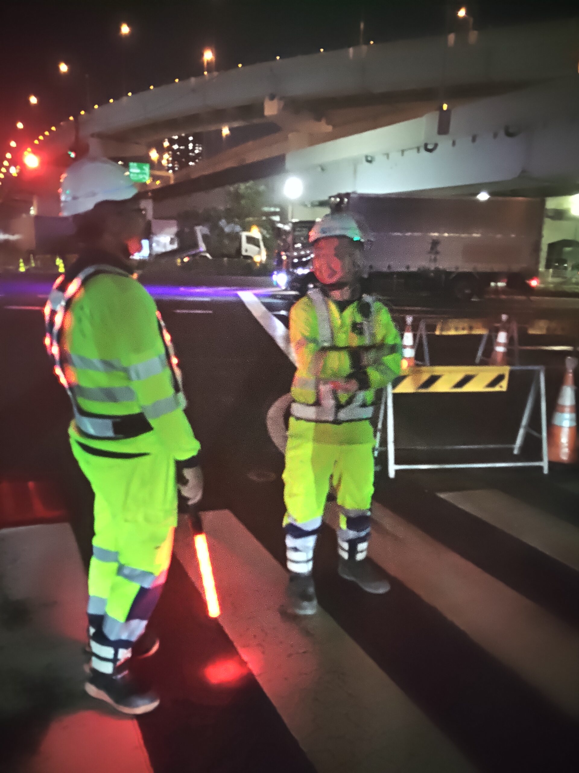 所感 本日の業務で現場竣工になります。 お客様からの評価もあり、今後の物件のリピートにつながればと思います。 舗装後の為道路は綺麗ですが、施工前は道路内に轍があり、 夜間業務ということを踏まえてのKYのハザードを周知できなかったのが反省点です。 この日は海風も程よくあり暑さはあまり感じませんでしたが、 水分補給の定時周知を行うように職長へ指導。 大きな事故なく無事竣工した。