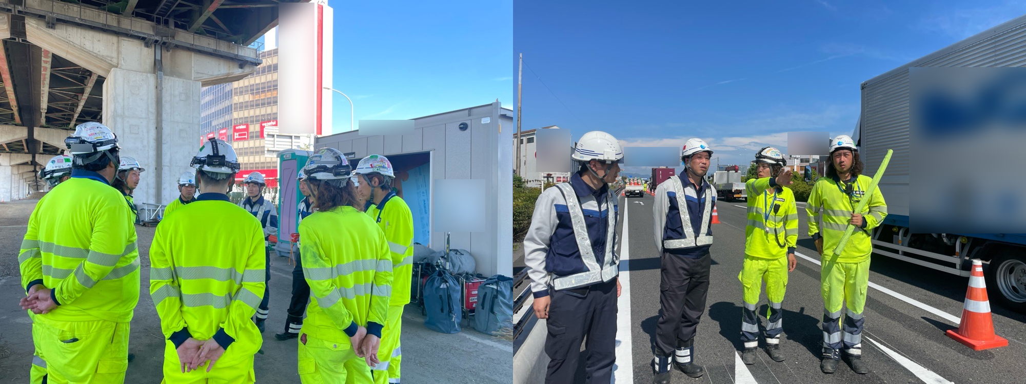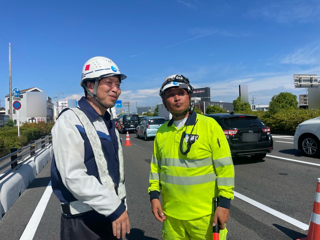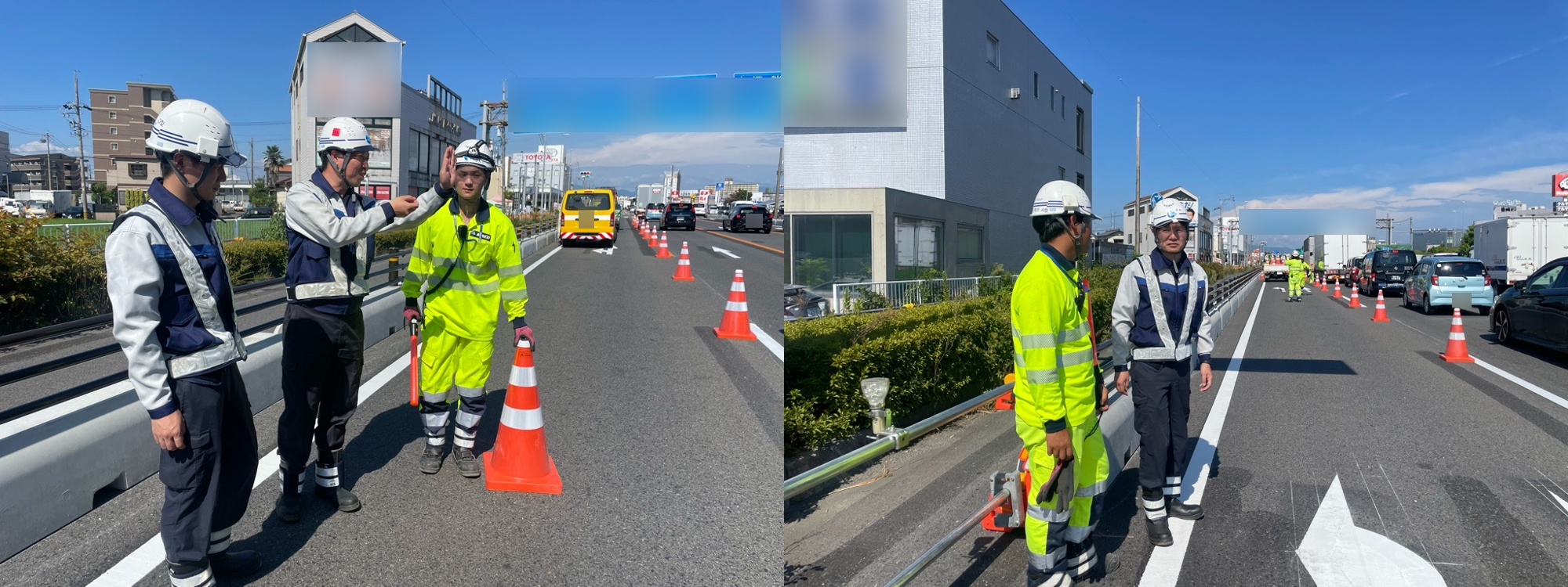 現場では交通量が多いため監視員を2名配置したり、スピードよりも安全を考え