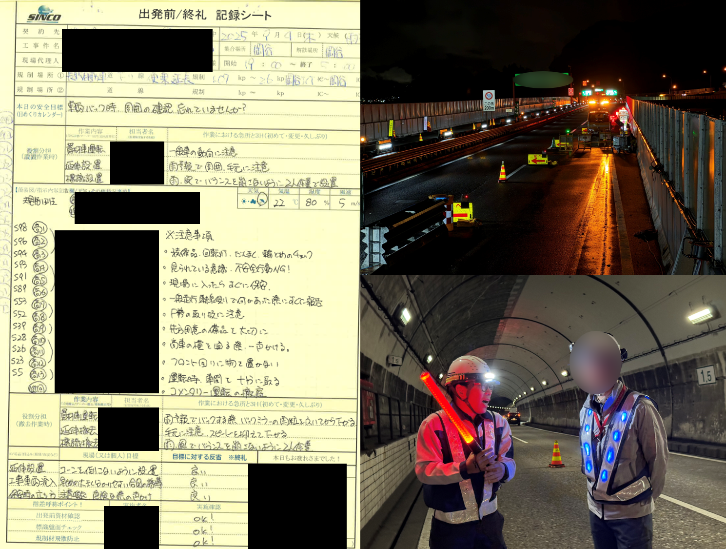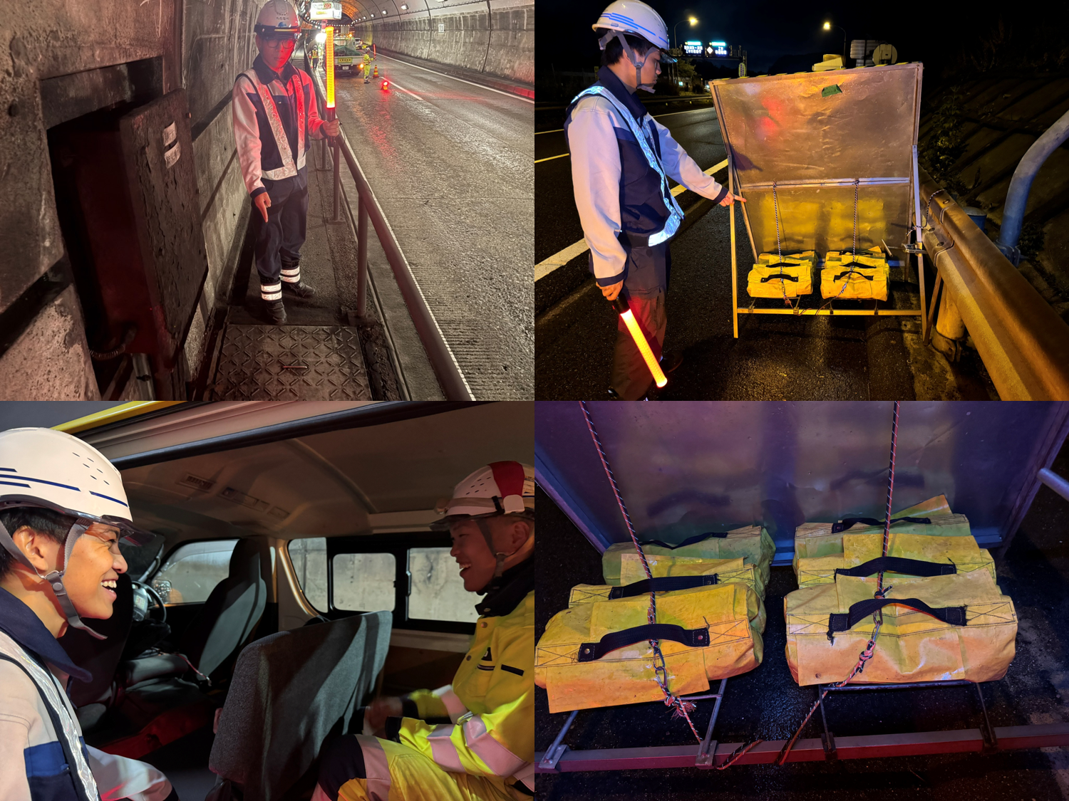 ・保安時も曲線部が続くため一般車が滑って規制帯へ突っ込む可能性を考慮して本線側で保安は極力しない。