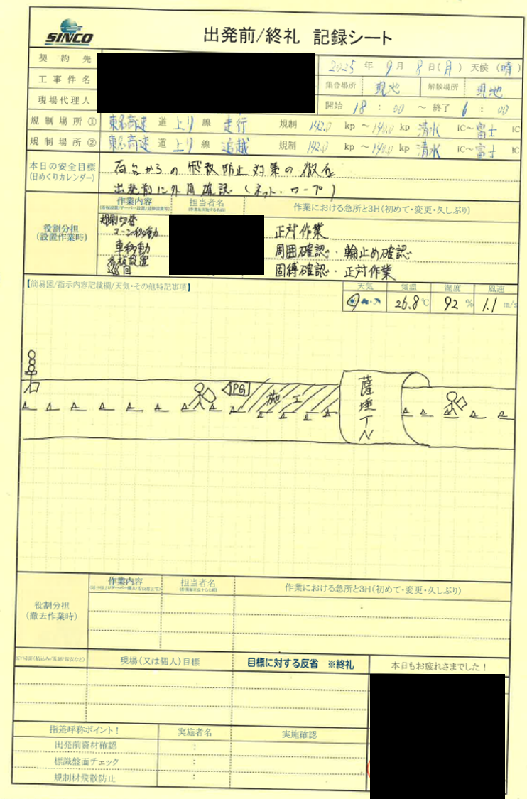 ・規制内に設置されている看板・矢板等の固縛・固定を確認