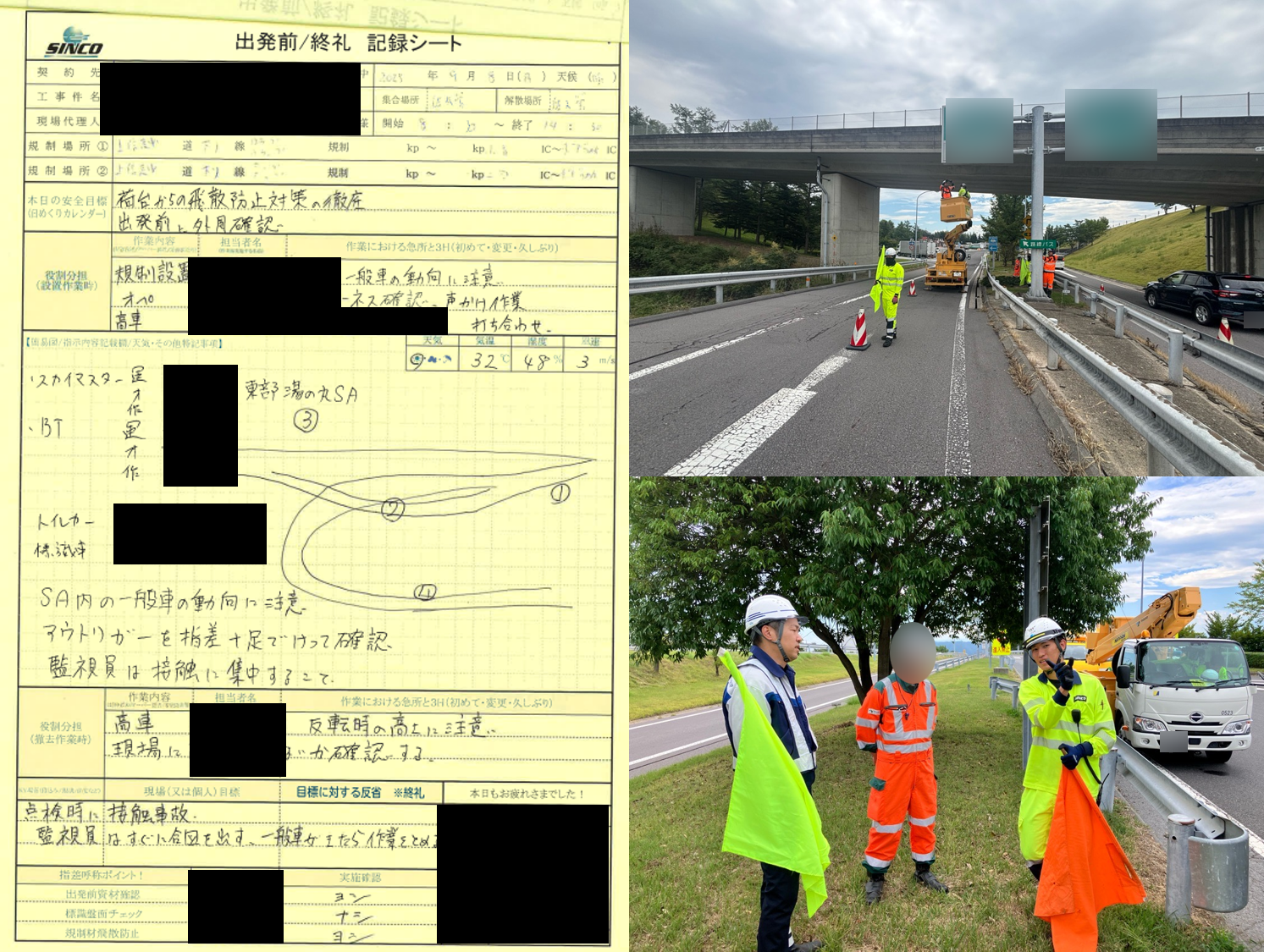 ・一般車が点検箇所に下を通過するときは笛で合図、作業停止