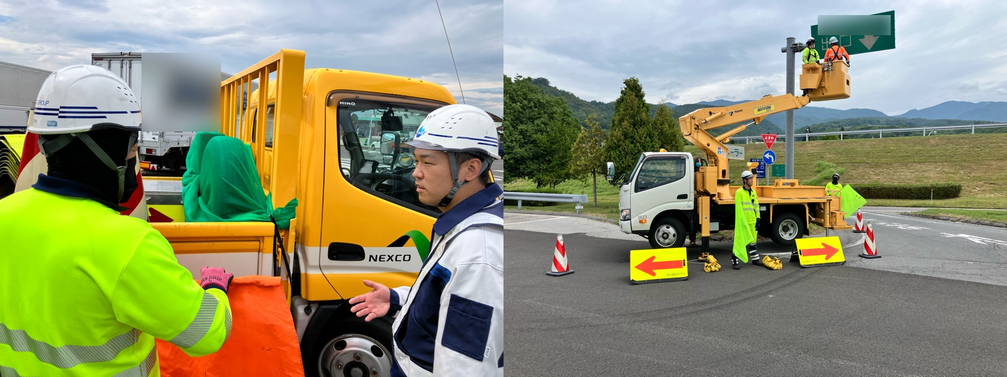 点検箇所のすぐそばを大型車両などが通過するので、