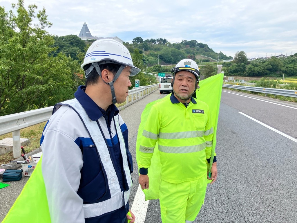 所長パトロール 上信越道下り線走行車線規制(長野営業所)
