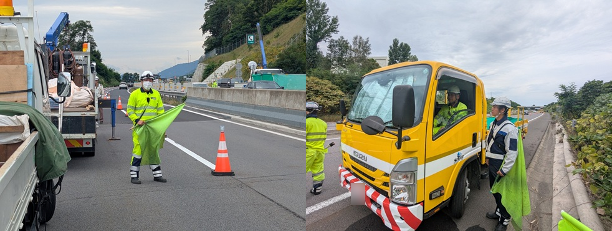 支社長パトロール 札樽自動車道下り線走行車線規制(江別営業所)