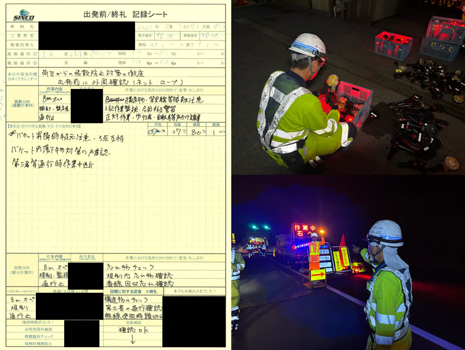 ・規制に対する注意ポイント:設置時は通行車両への合図・声掛けを徹底し、