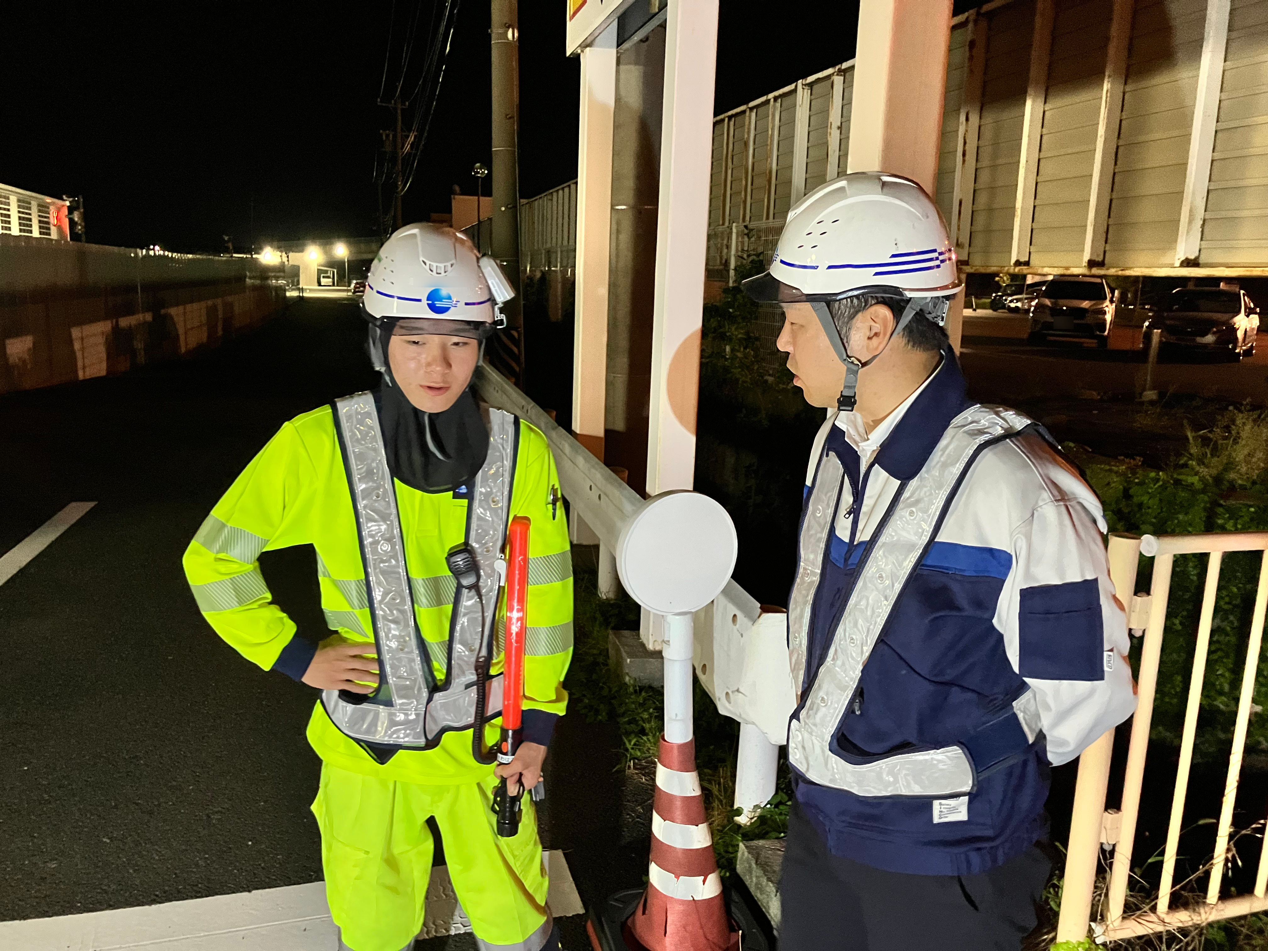 そのような状況もあってこの現場では規制中は常にテーパー部に追い出し要員を配置しております。