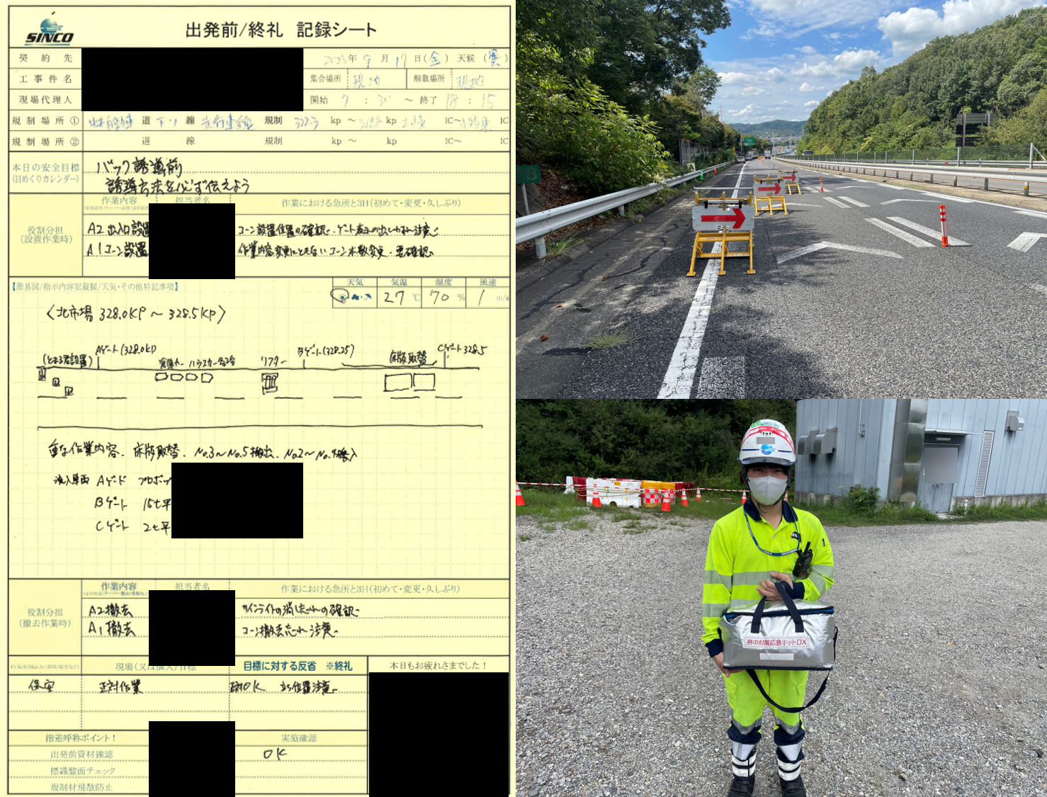 本日より床版取替作業が始まりセルフ車の出入り誘導やバック誘導が必要となります。