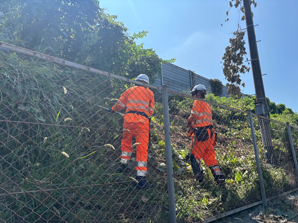 作業員に対しての注意喚起(作業ストップの合図)もしっかり行えていた。