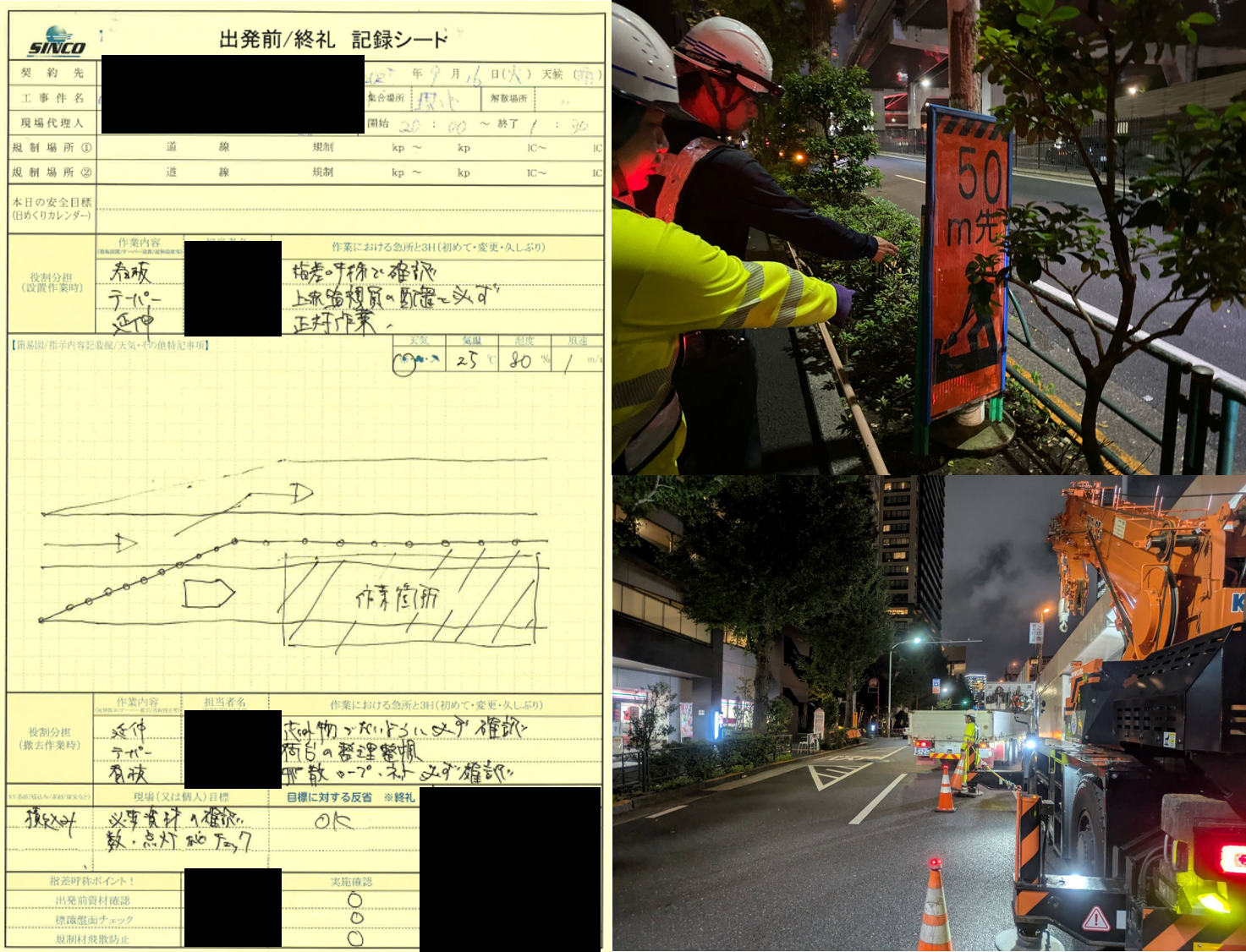 準備中に資材に不具合があり規制開始に間に合うよう鈴木にて資材を届けそのまま設置パトを行いました。
