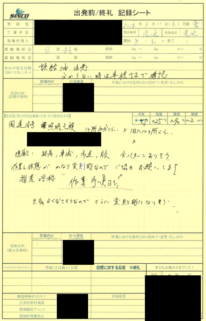 看板撤去や移動規制の際にも「忘れ物ナシ!」「固定ヨシ!」など