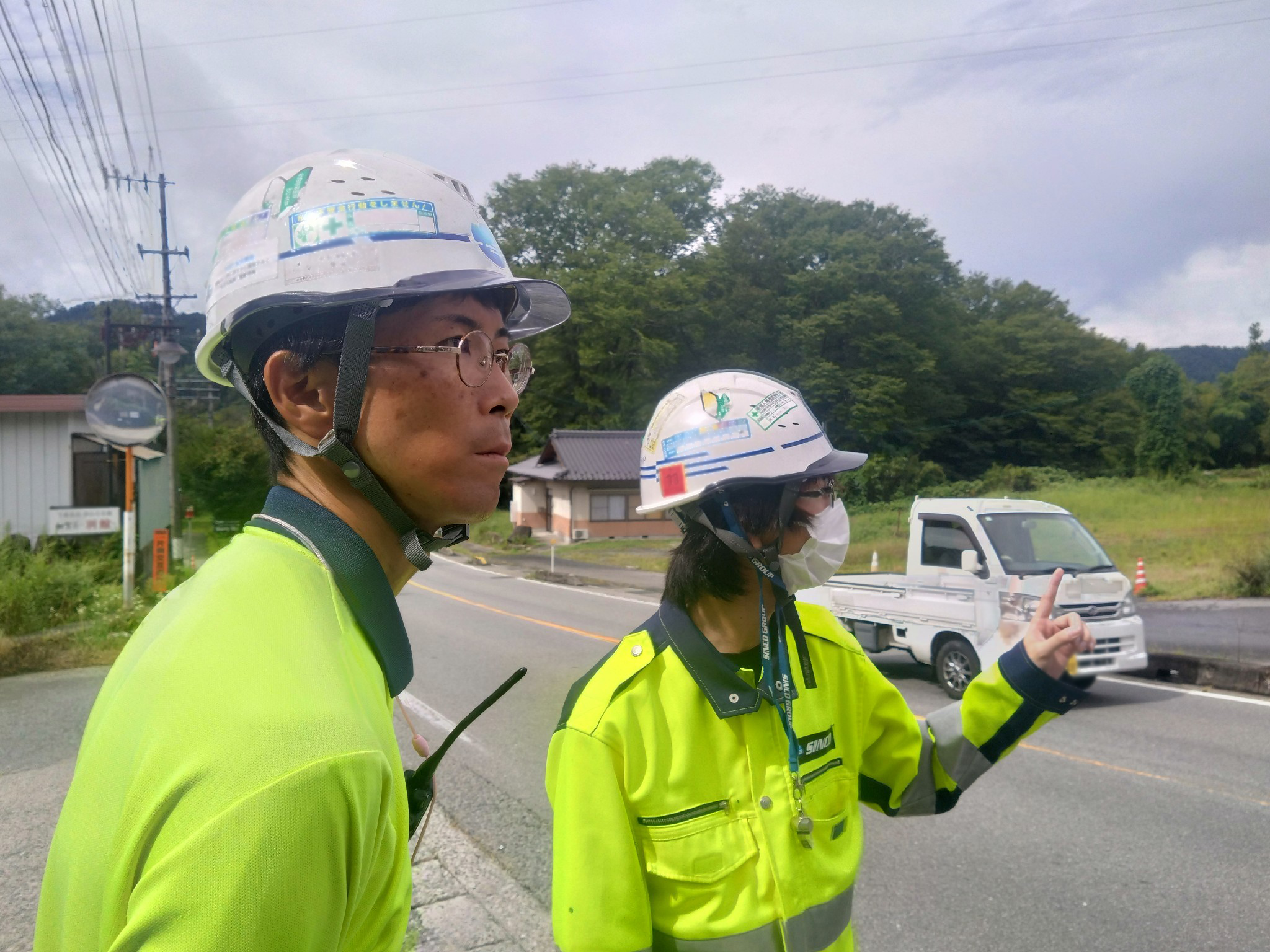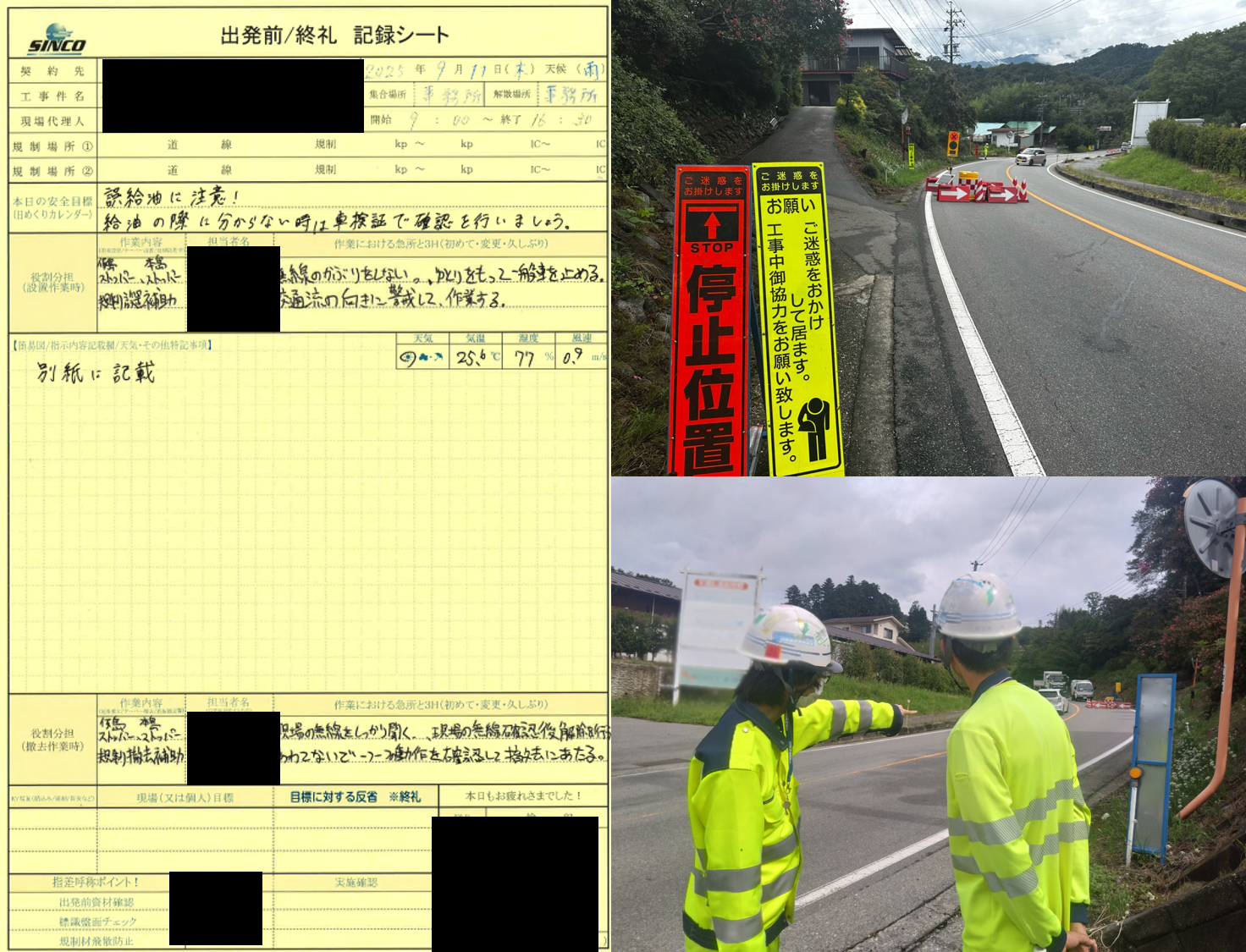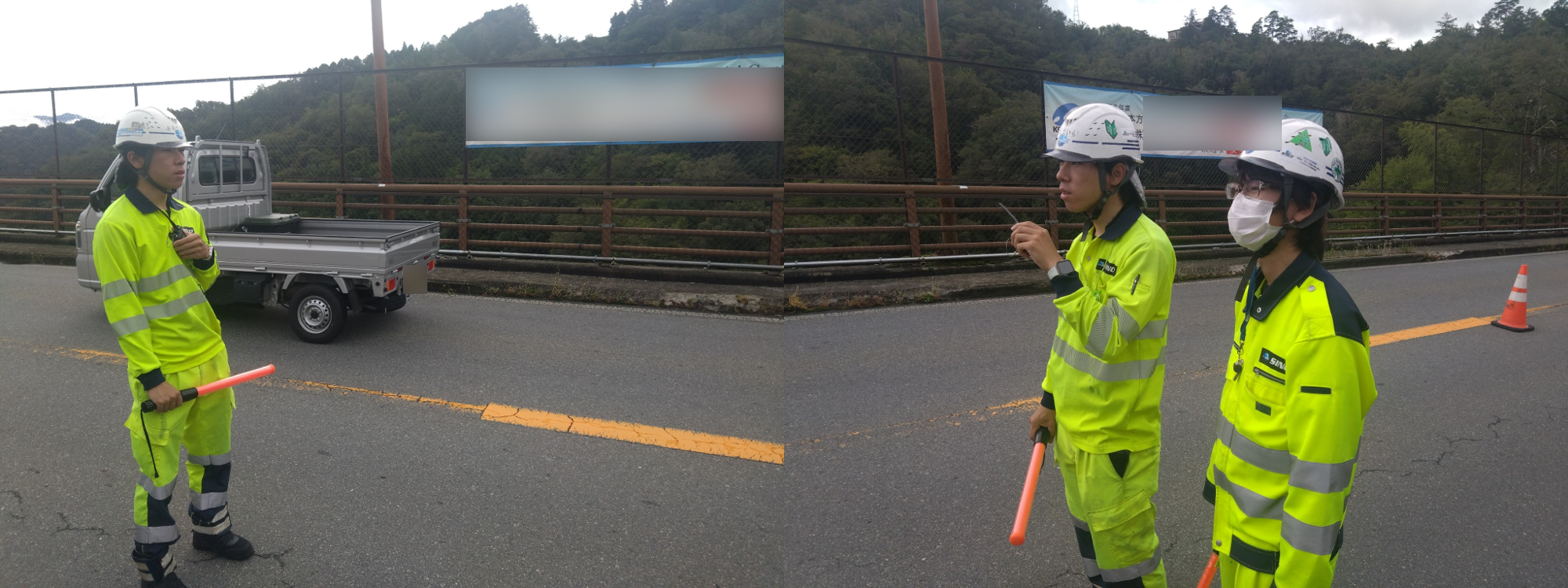 シンコー職員は規制設置撤去時の作業補助、片側交互通行規制誘導。