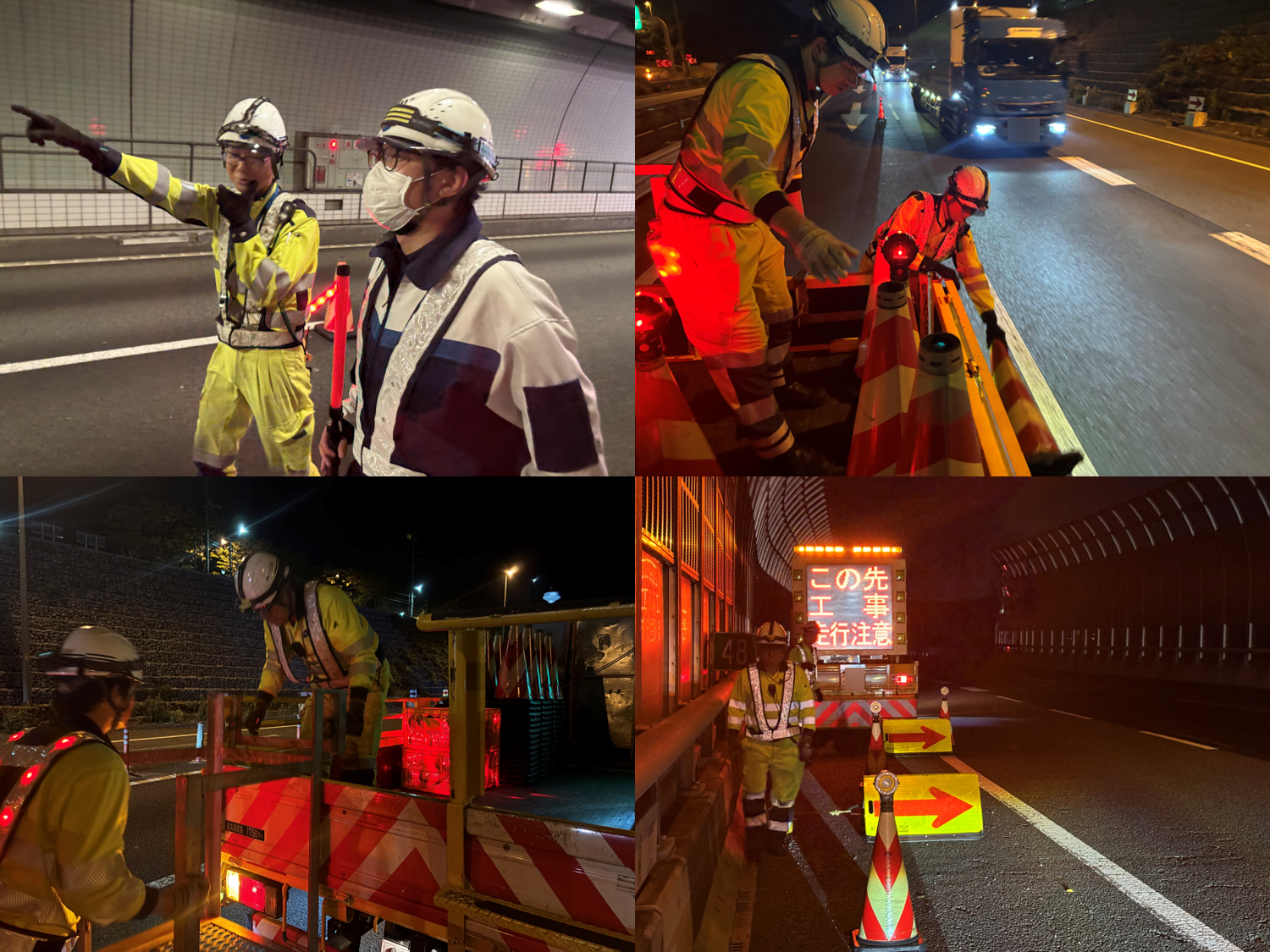 直前で規制箇所付近で一般車による事故があり、規制の設置が1時間半遅れましたが、